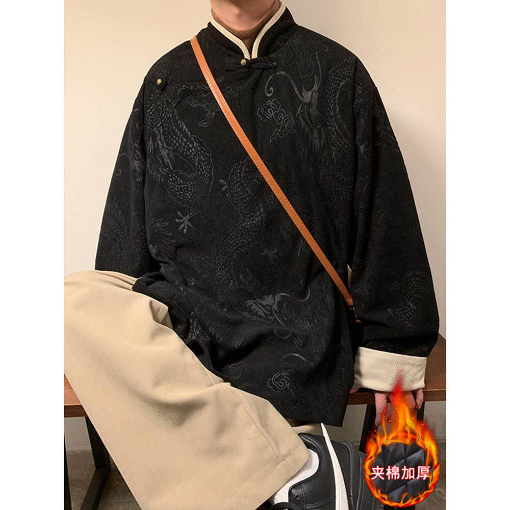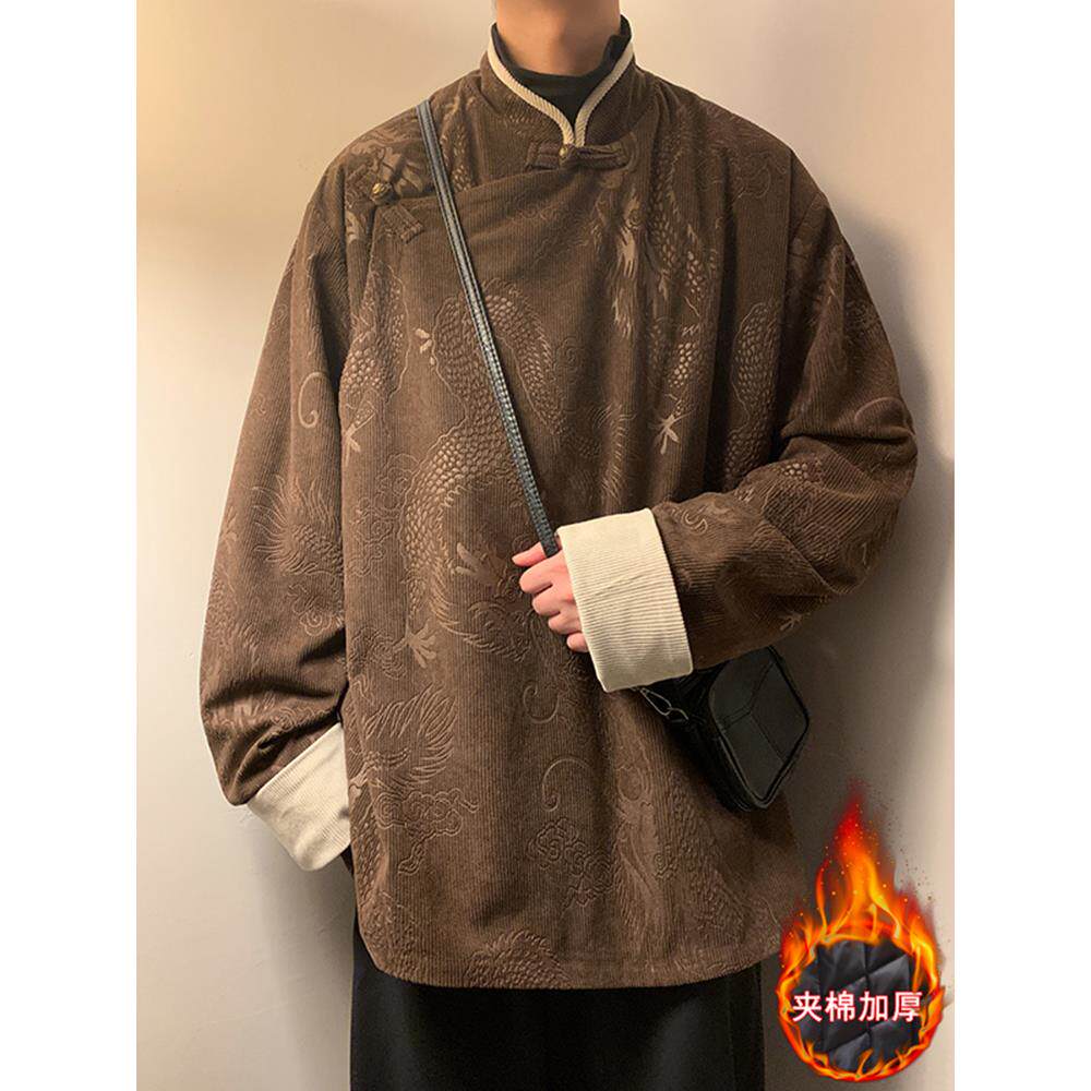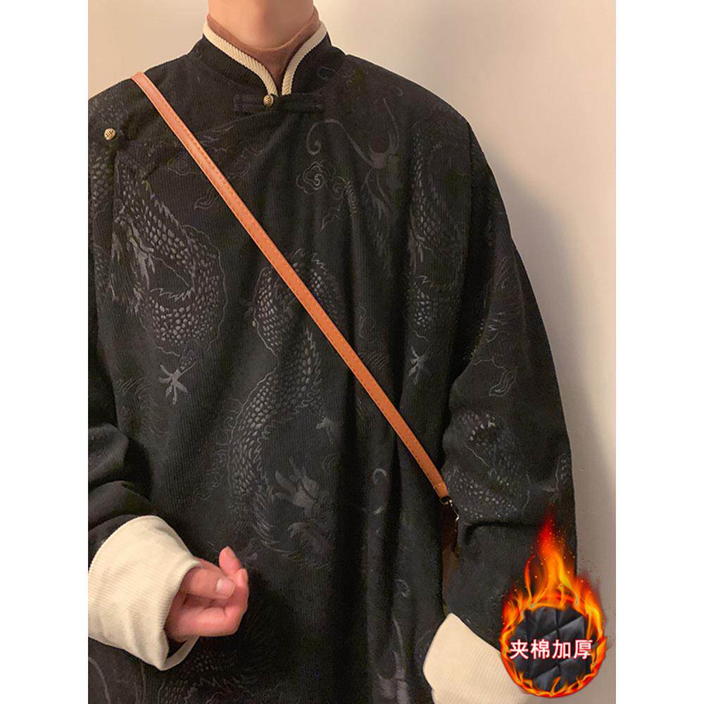 📚 冬季新中式藏袍褂子男士加厚棉服外套中国风唐装汉服棉衣禅修茶服