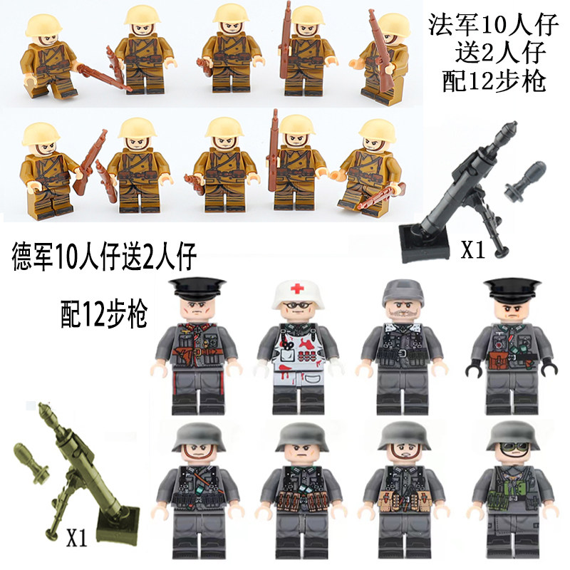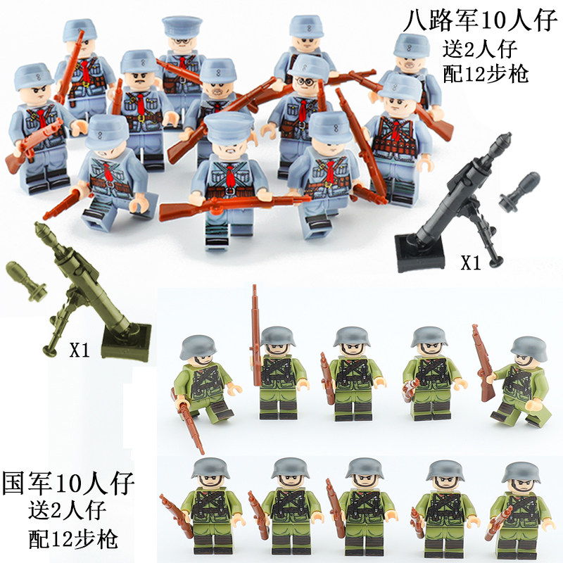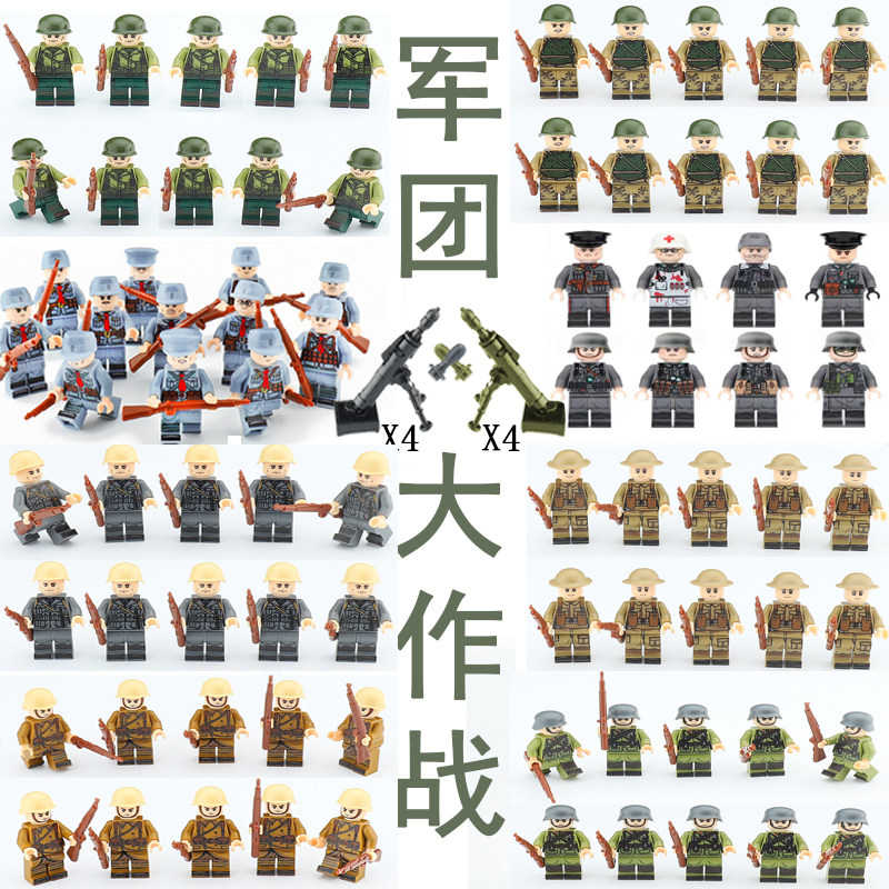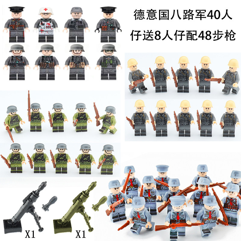 📚 八国军团二战人仔士兵武器拼装德军苏军八路军小人偶积木益智玩具