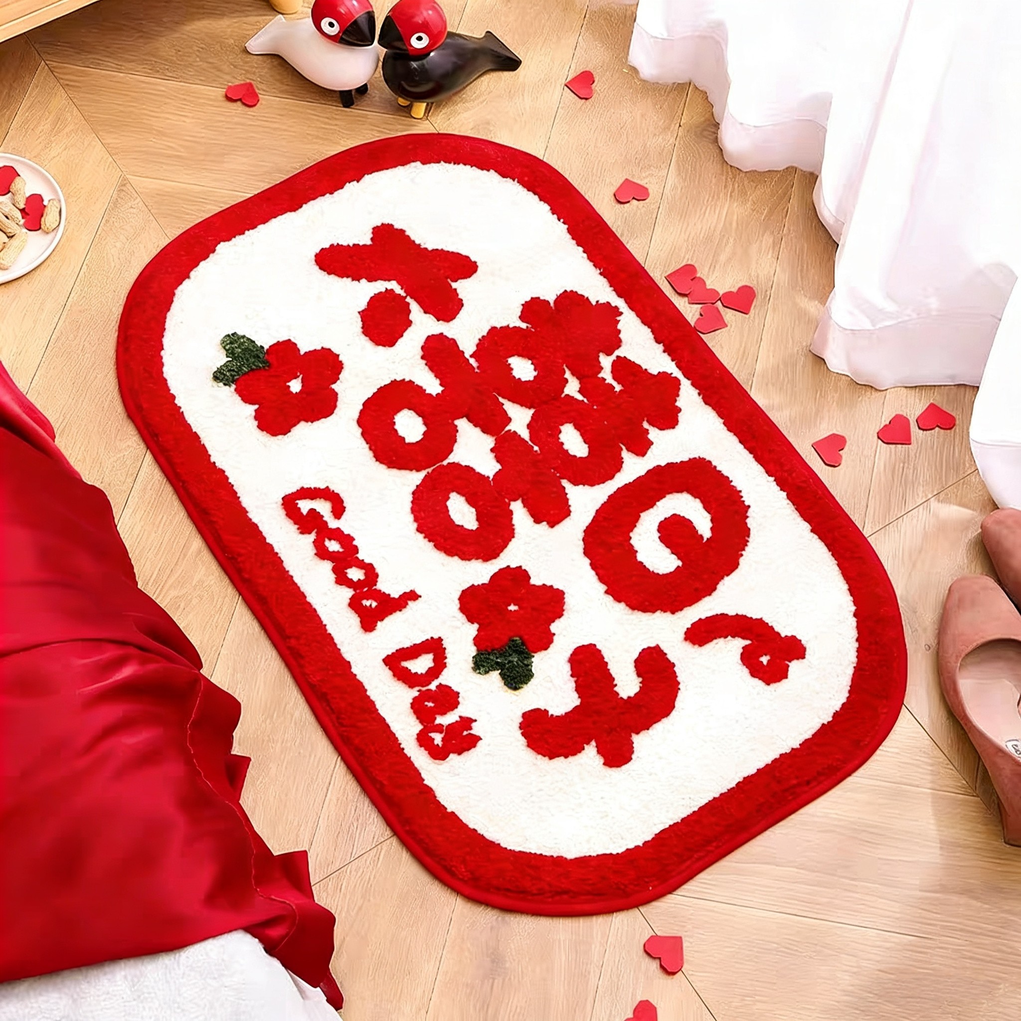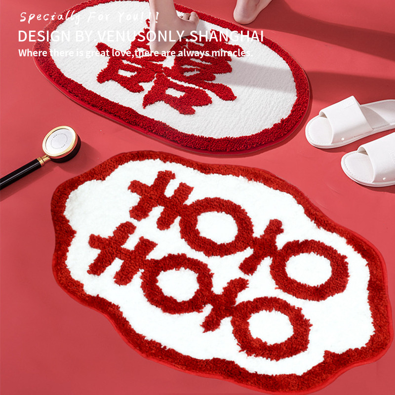 📚 小红书同款结婚地垫入户门垫中式婚房布置脚垫卧室喜字花边喜地毯