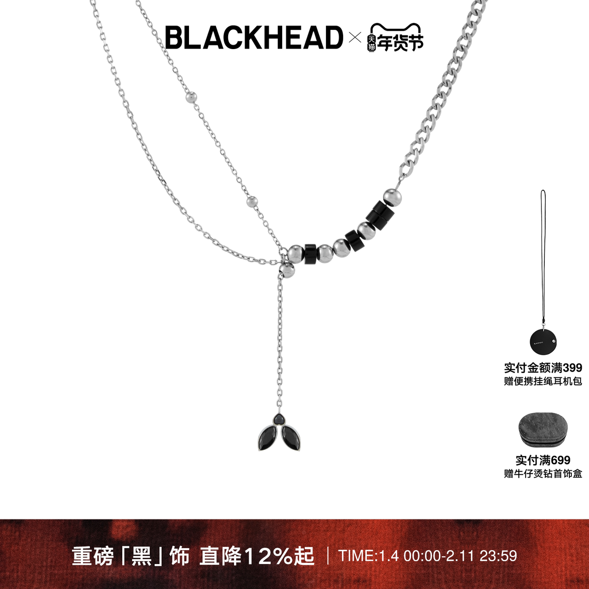 📚 BLACKHEAD/黑头可抽拉朋克蛾拼接项链个性简约原创送礼礼物