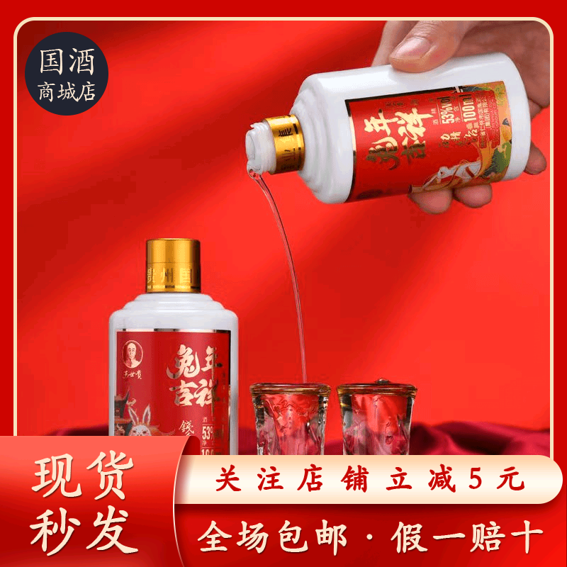 📚 王世贵【兔年吉祥生肖】贵州酱香型粮食53度白酒5瓶53度100ml*10