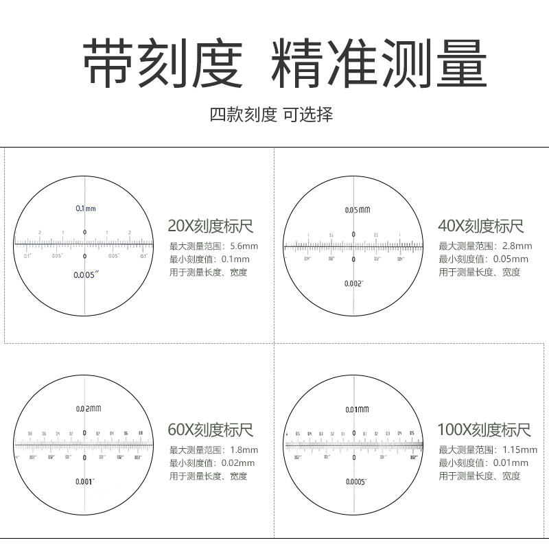 📚 GAOPIN 20/40/60/100倍 高倍放大镜 高清带刻度百倍镜带尺测量网