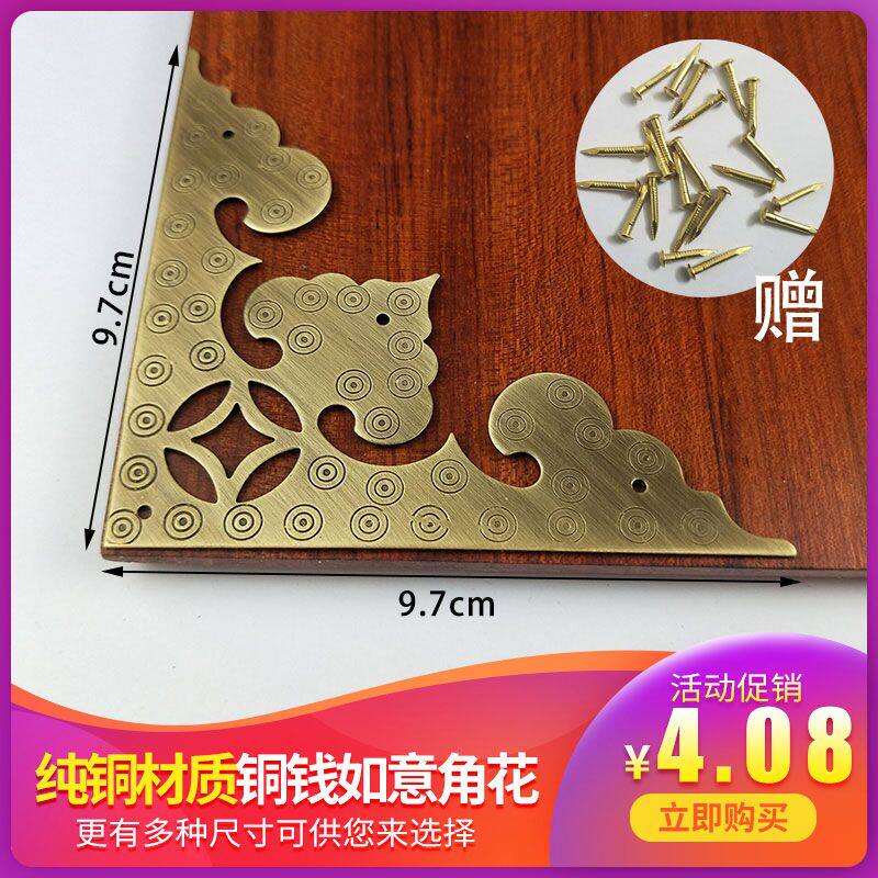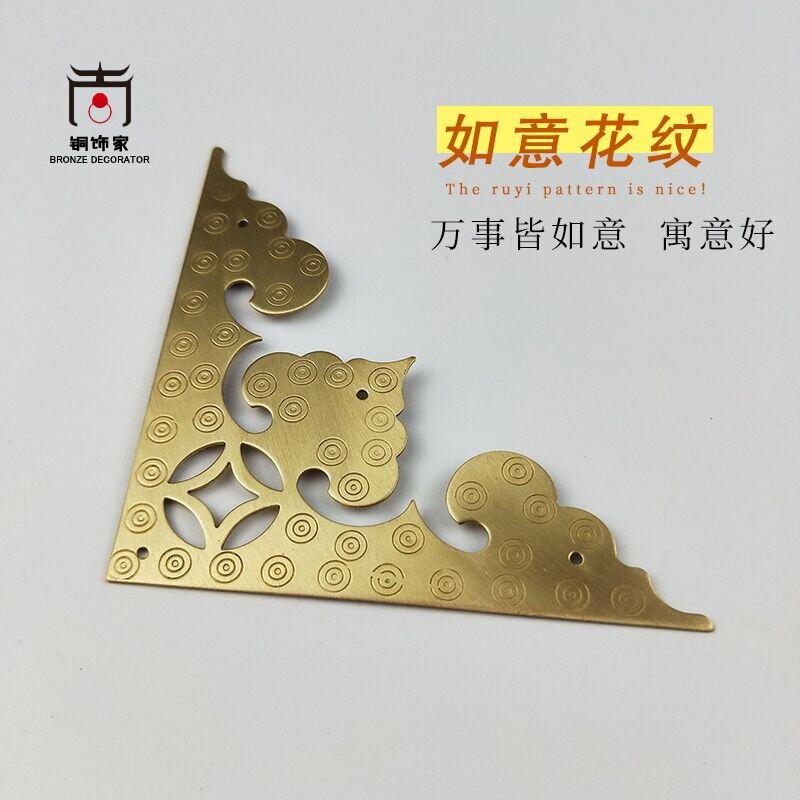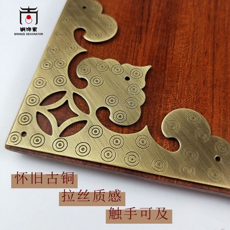 📚 仿古中式纯铜包角铜护角古建大门柜门樟木箱全铜角片镂空刻花角码
