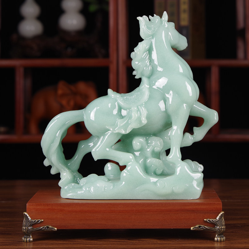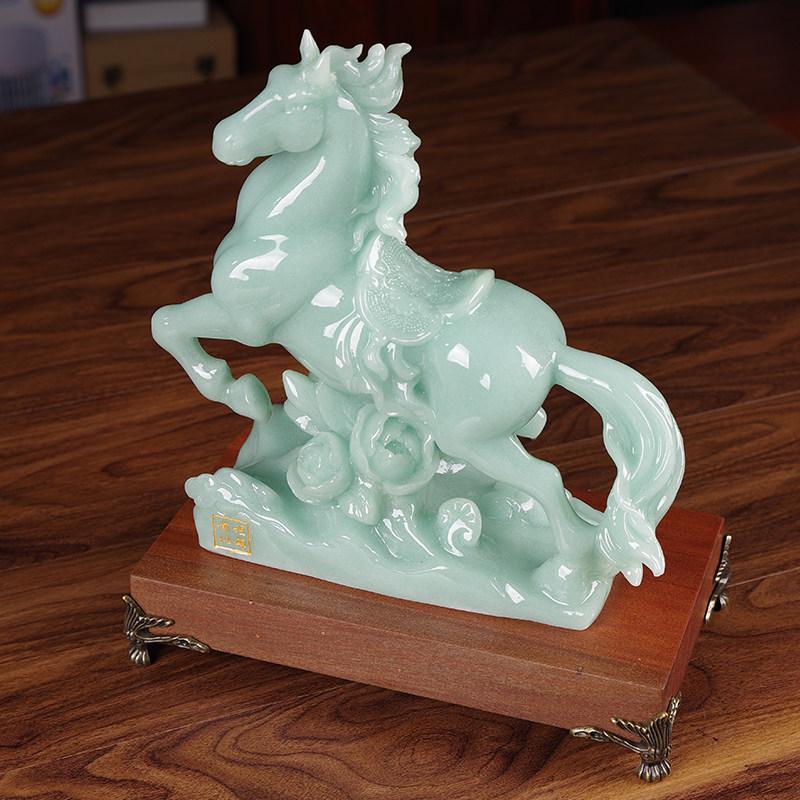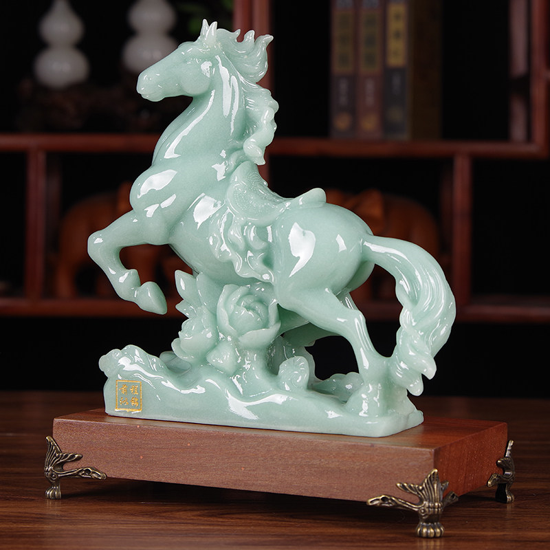 📚 招财玉石马摆件前程似锦生肖马新中式客厅酒柜玄关装饰办公室摆设