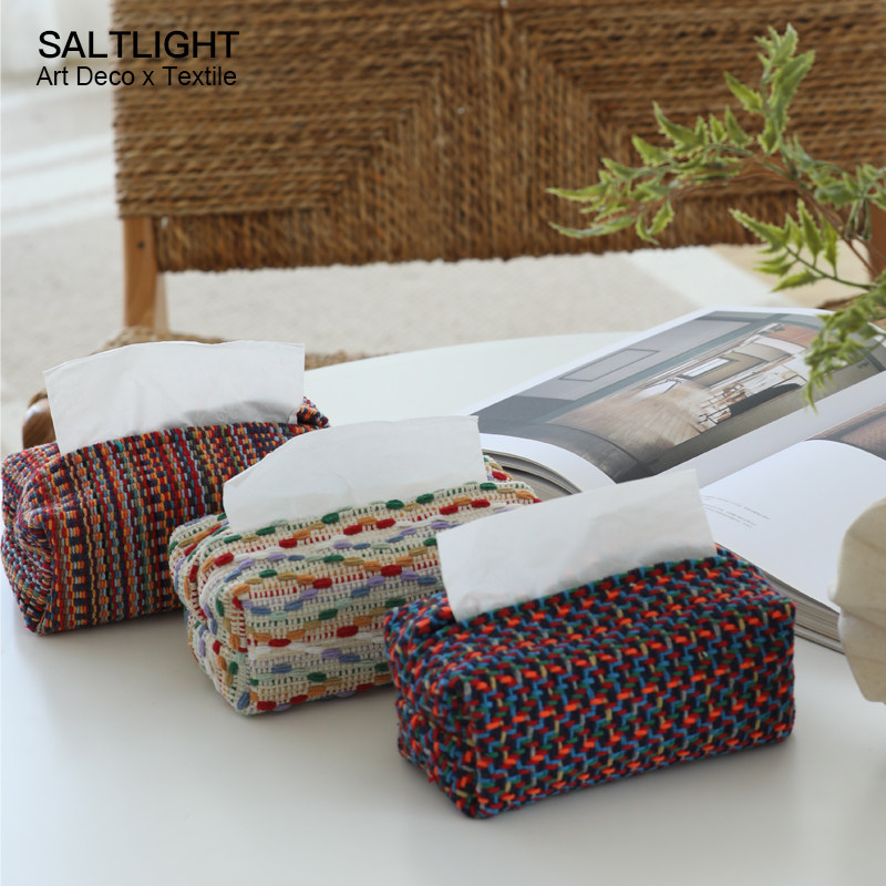 📚 光与盐 棉麻彩色编织布艺纸巾盒客厅桌面摆件收纳家用氛围抽纸盒