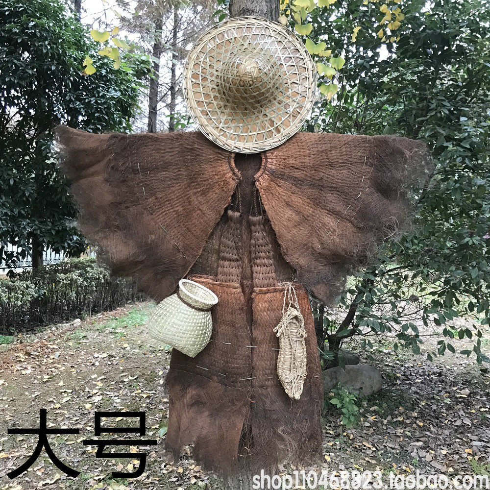 📚 蓑衣斗笠帽草鞋鱼篓棕衣防雨农家乐装饰古代蓑笠怀旧挂件披肩梭衣