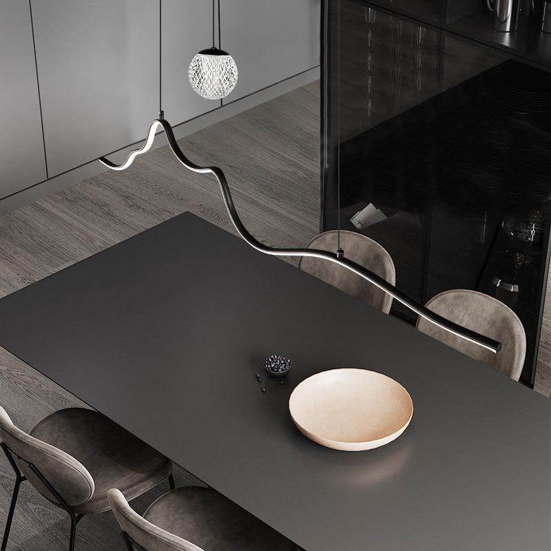 #北欧餐厅 #全铜一字长条吊线灯 #现代简约 #饭厅餐桌吧台 #创意波浪形吊灯 #券后价809