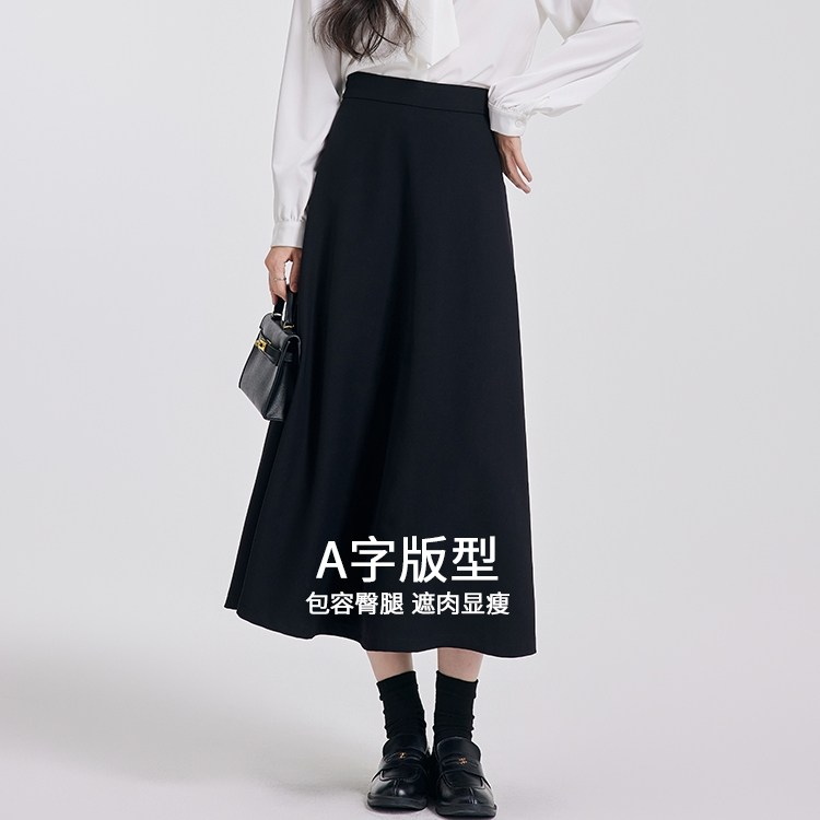 📚 达佳诗教资面试黑色a字半身裙女春秋新款正装西装裙伞裙长款裙子