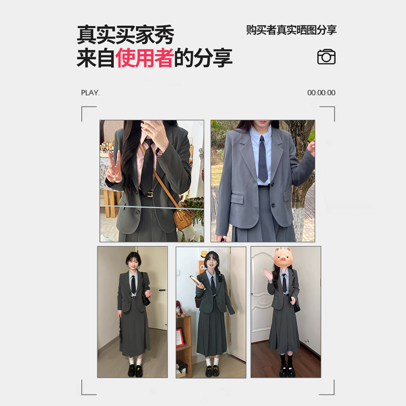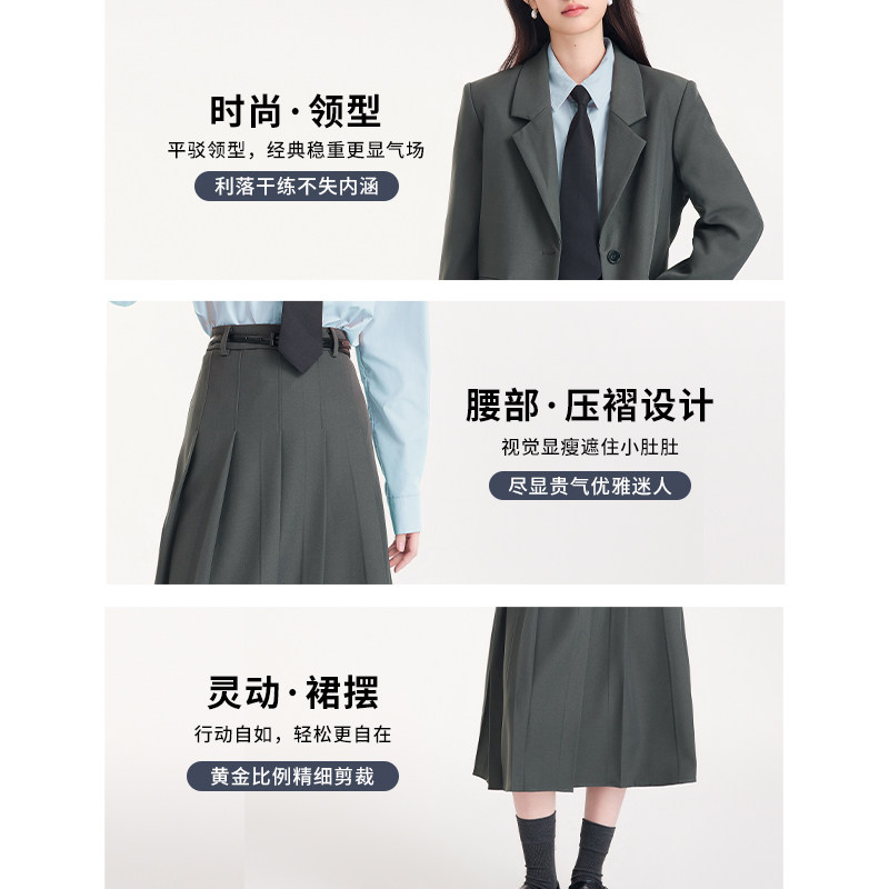 📚 图曼朵灰色西装套装裙女生春小个子面试正装学院风高级感西服外套