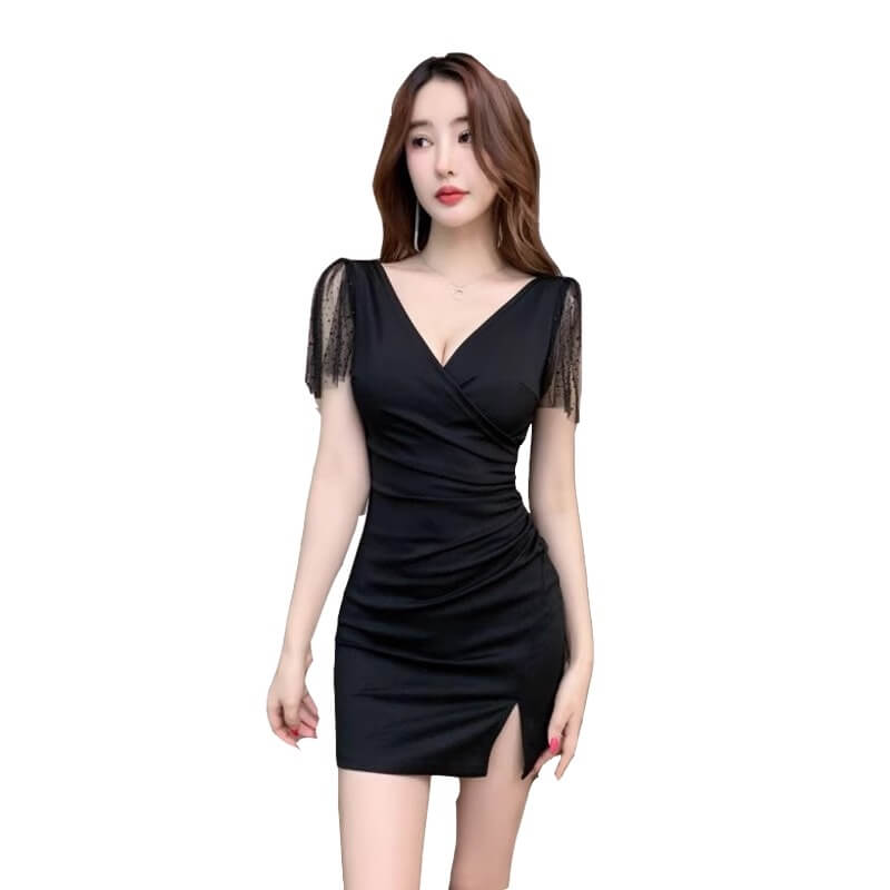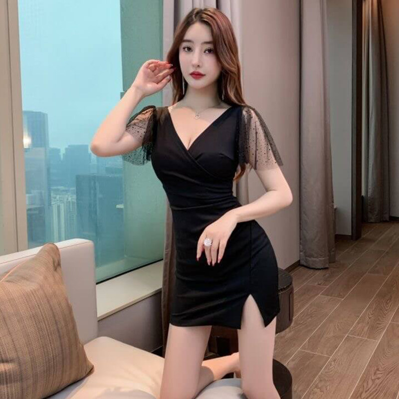 📚 夜总会性感连衣裙深V礼服spa足疗足浴技师工作服包臀夜场上班衣服