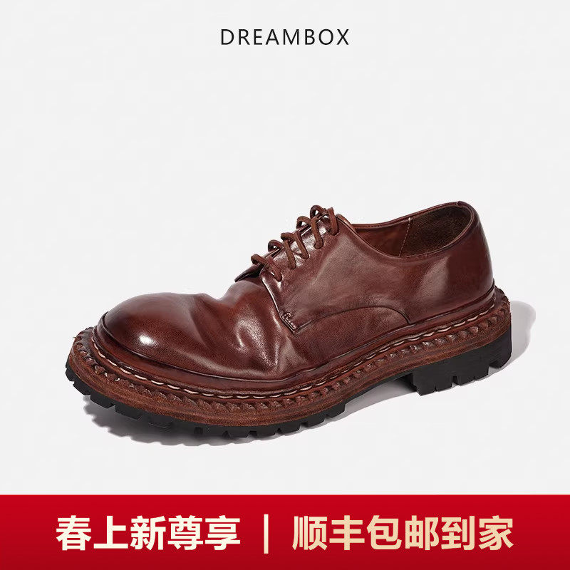 📚 DREAMBOX钧博vibram耐磨厚底增高大头德比鞋手工马皮男士休闲皮鞋