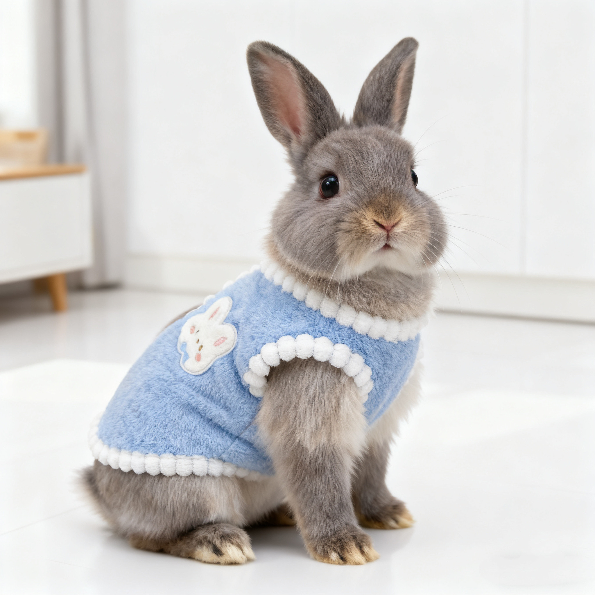 💖这款背心的材质超级柔软舒适,穿上后就像给兔子穿上了冬日的温暖大衣。它的设计简约时尚,适合各种宠物场合,无论是户外公园、宠物店还是自家阳台,都能轻松应对。而且,它的保暖性能非常出色,让你的兔子在寒冷的冬天里也能保持温暖。