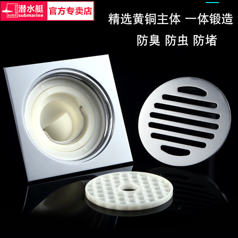 📚 潜水艇地漏全铜防臭9厘米方形9×9cm卫生间淋浴90x90mm洗衣九公分