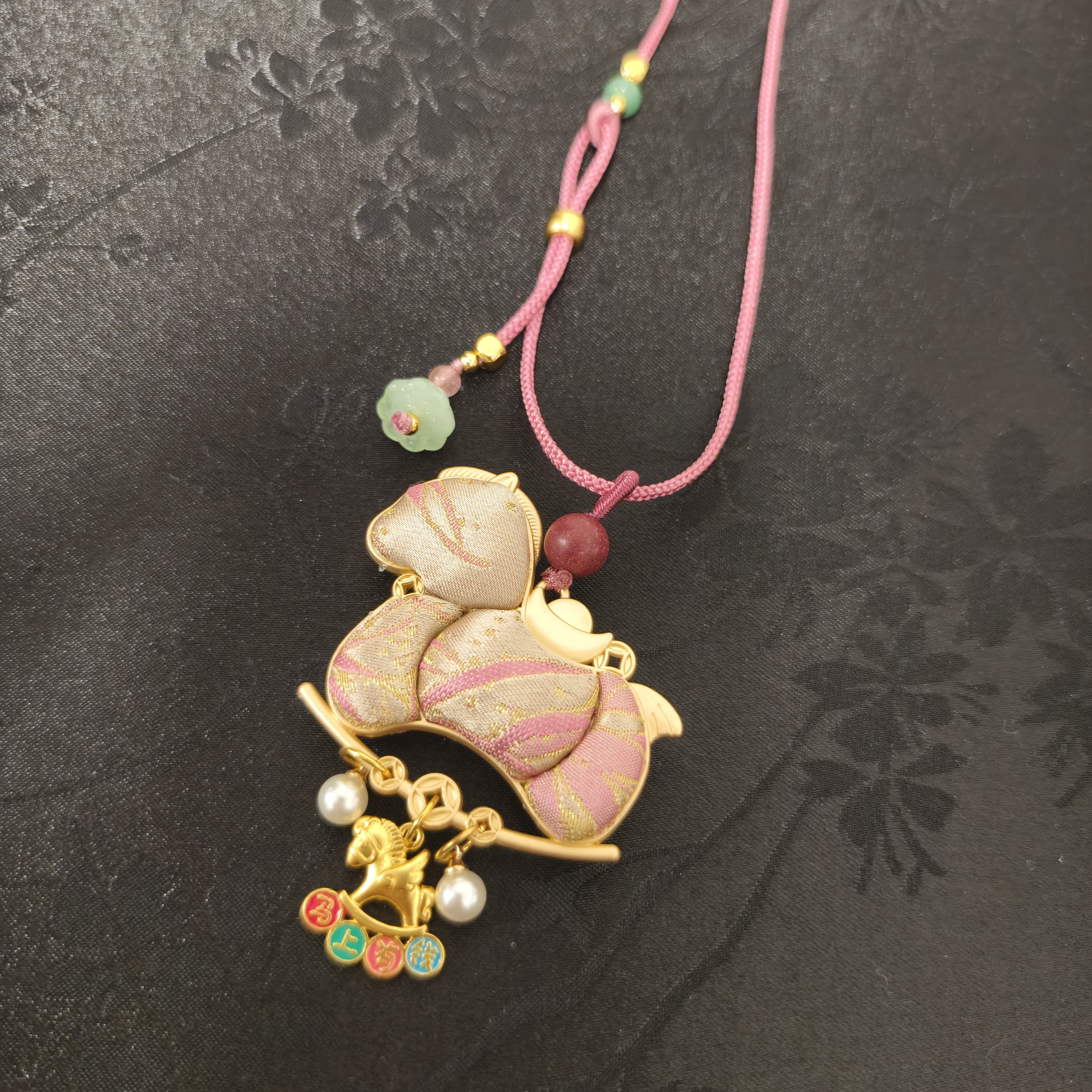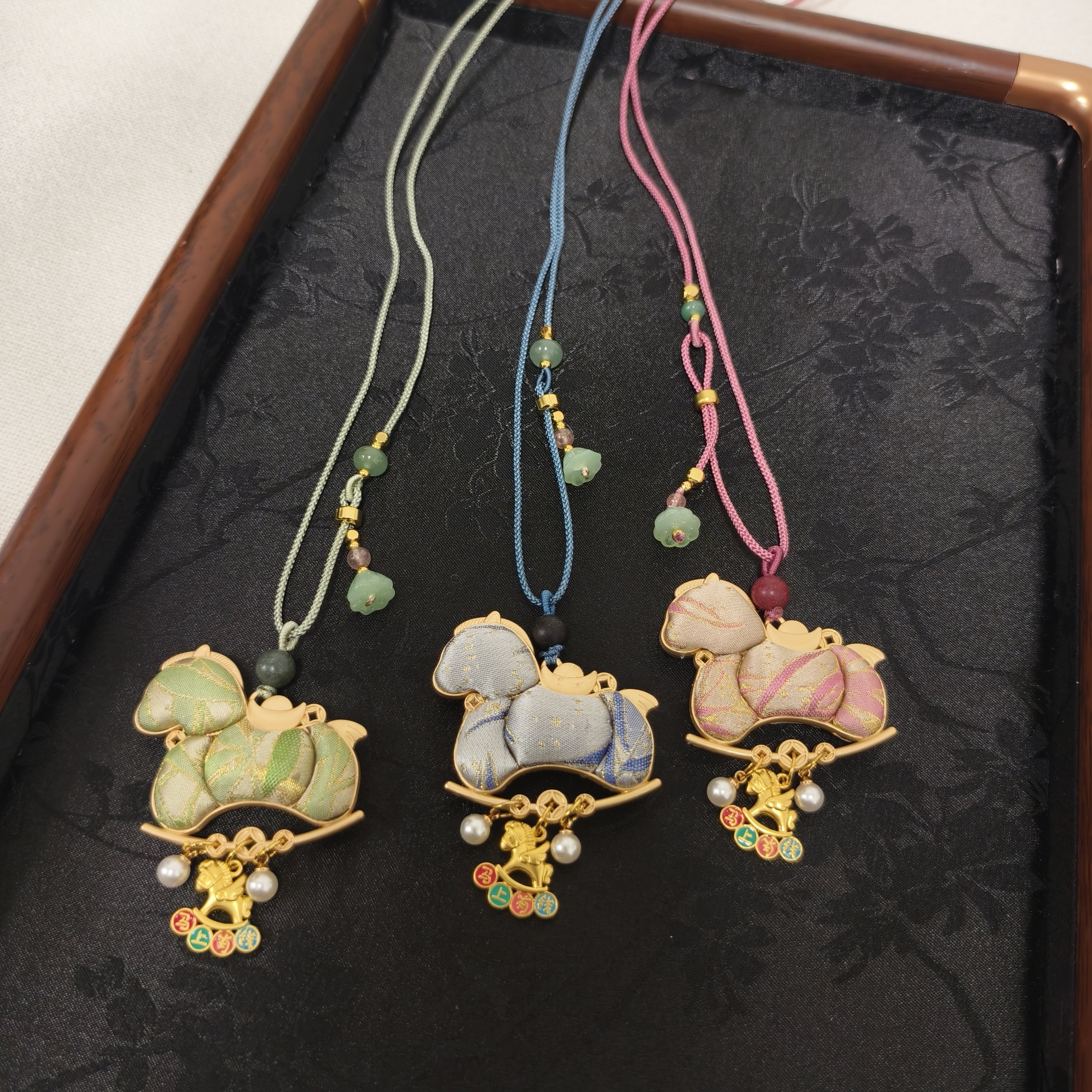 🎉亲爱的宝贝们,今天我要分享的是一款让我彻底沦陷的饰品——【橙庐】520007原创新中式三彩萌马含香珠宋锦编绳项链!真的是一见钟情,让人欲罢不能!