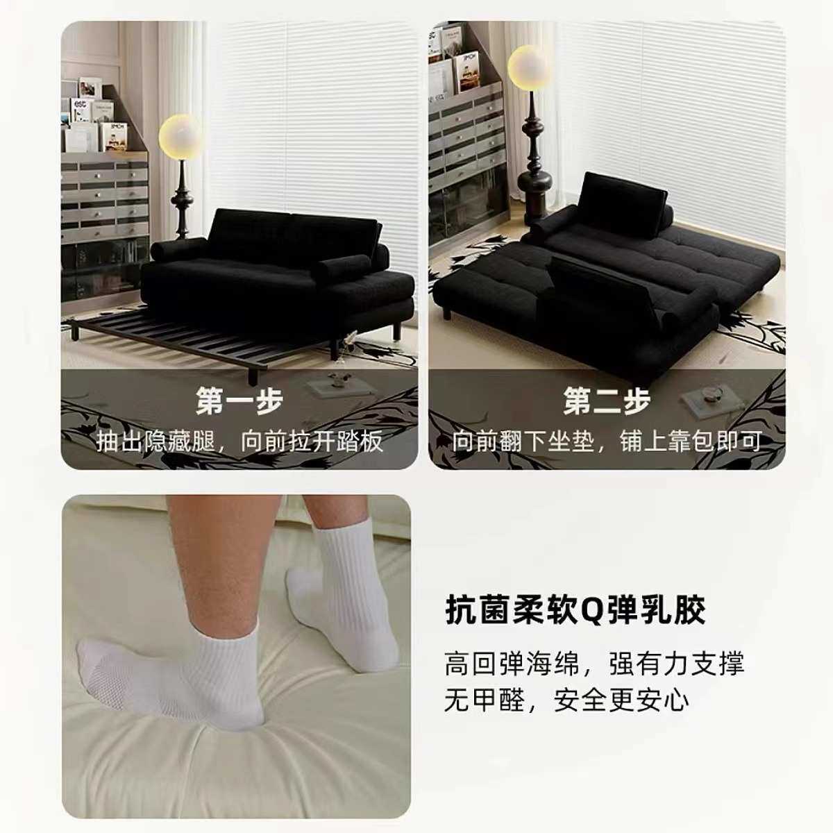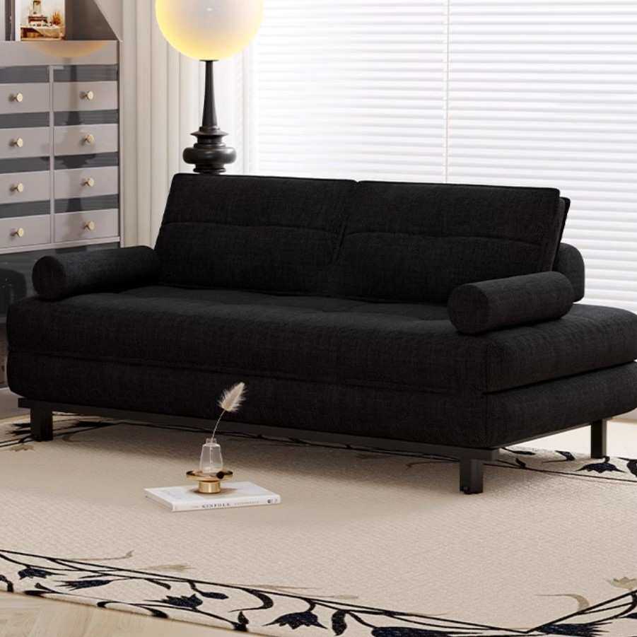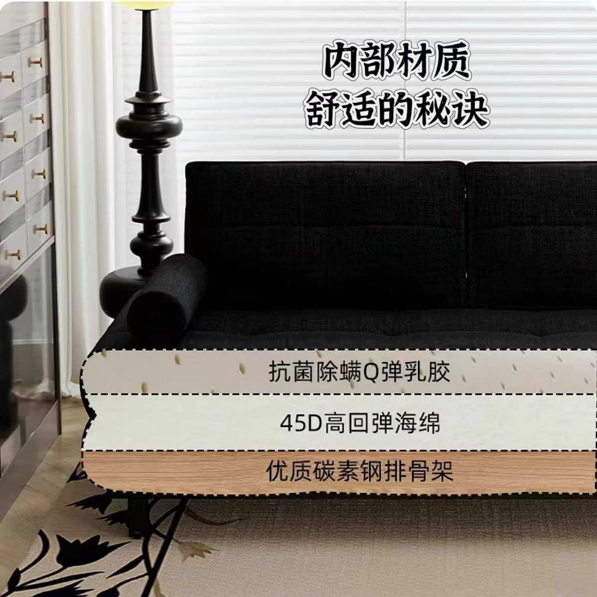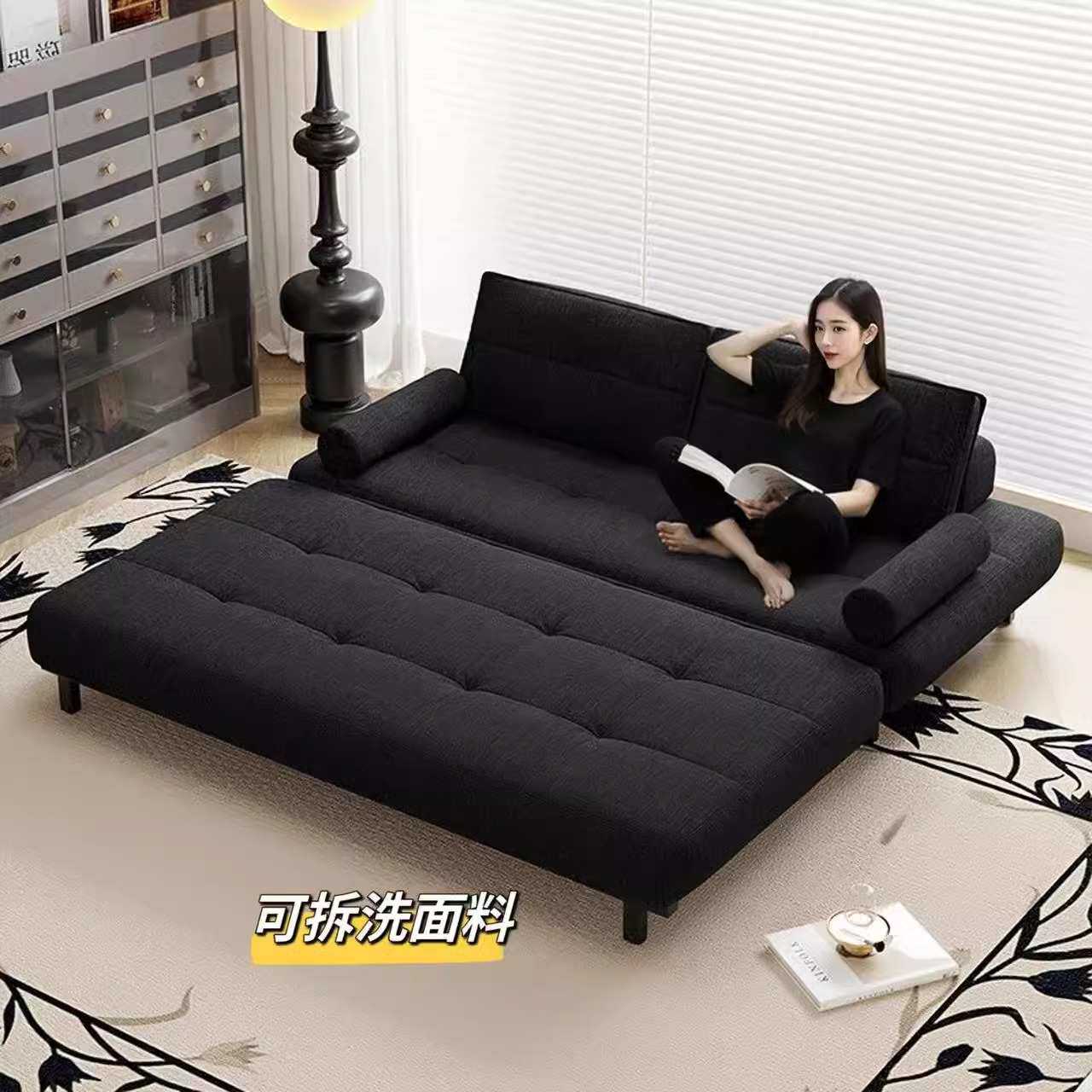 📚 黑色棉麻布艺单人双人网红书房小户型客厅可折叠沙发床一体两用款