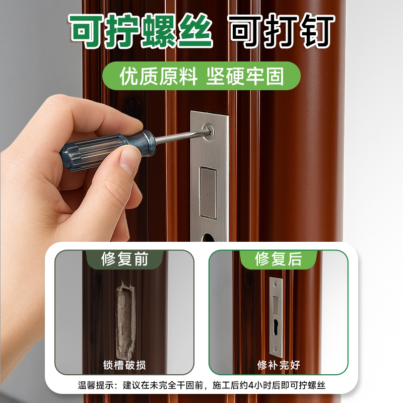 📚 木门破损修复胶泥门框锁槽修补木板补洞神器卧室门卫生间破洞填塞