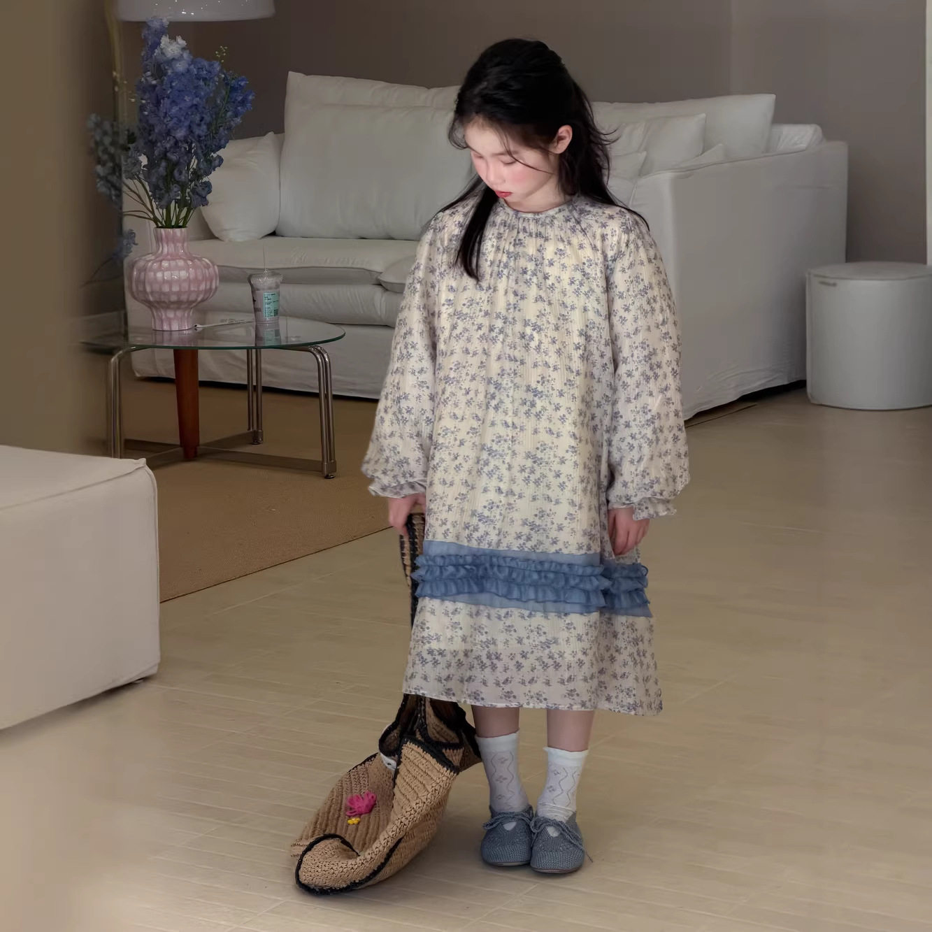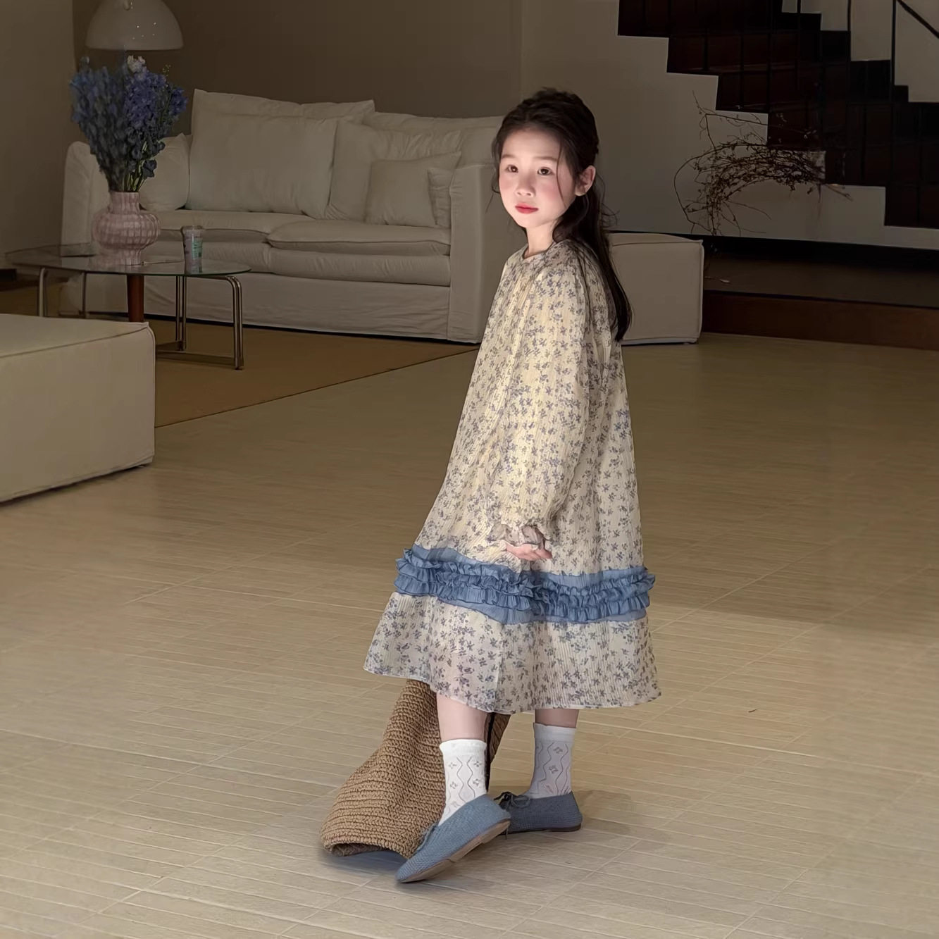 📚 末小蒙童裙2026春款女宝宝韩版拼接花边森系长款泡泡袖儿童连衣裙