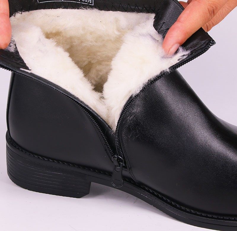 📚 冬季军勾羊毛棉皮鞋加绒保暖防寒皮棉靴真皮羊毛靴皮毛一体军官靴