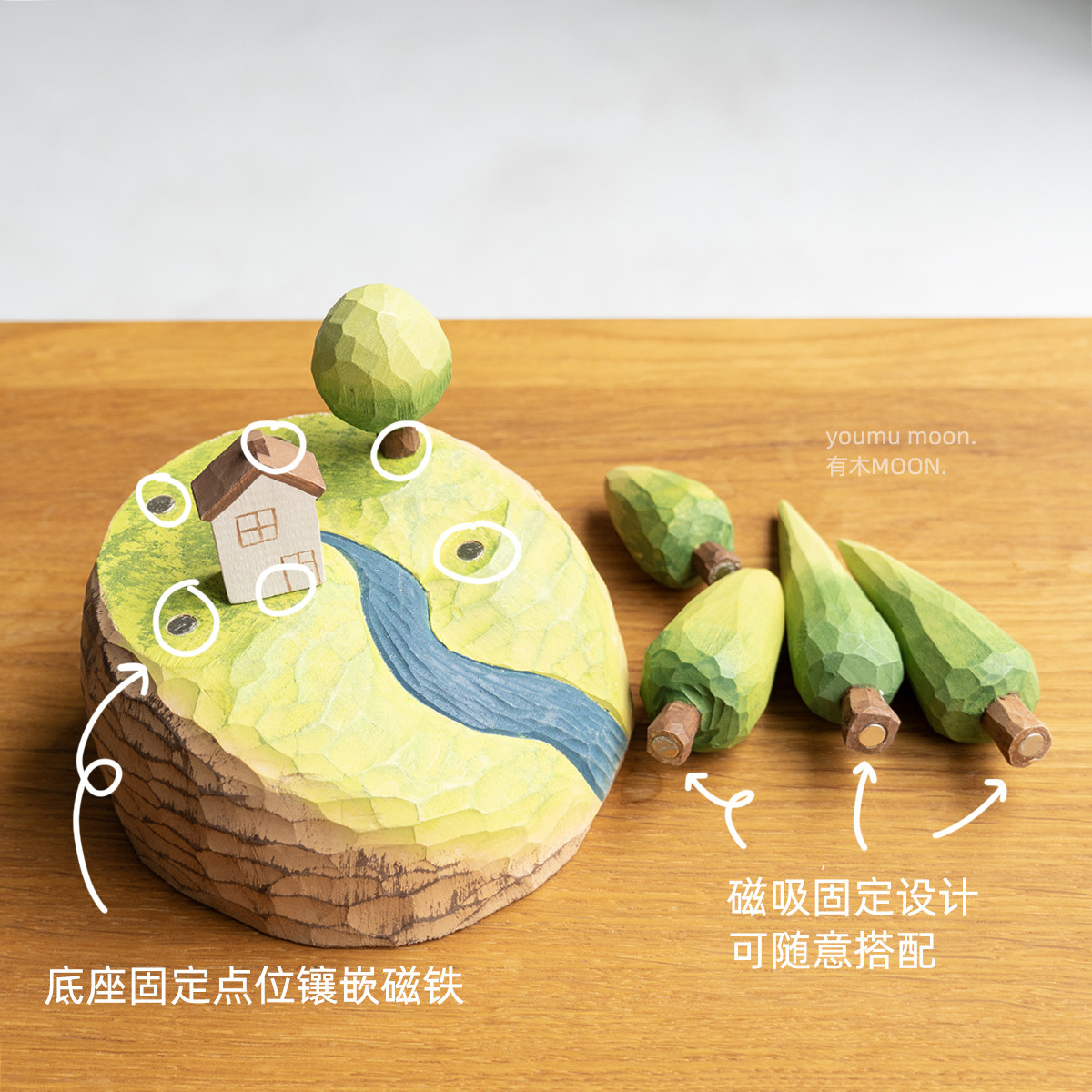📚 林中小屋 治愈系木雕桌面摆件磁吸设计高级感桌搭礼物礼品纯手工