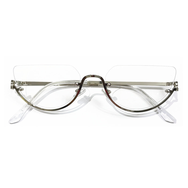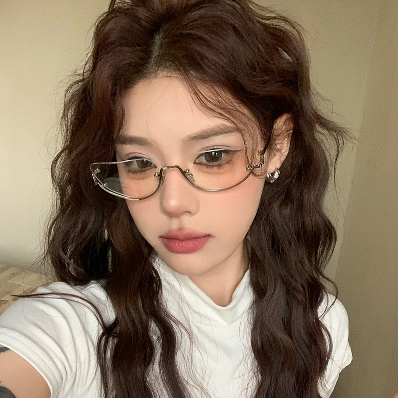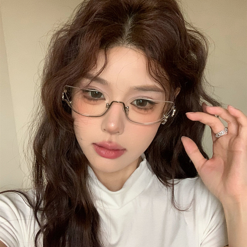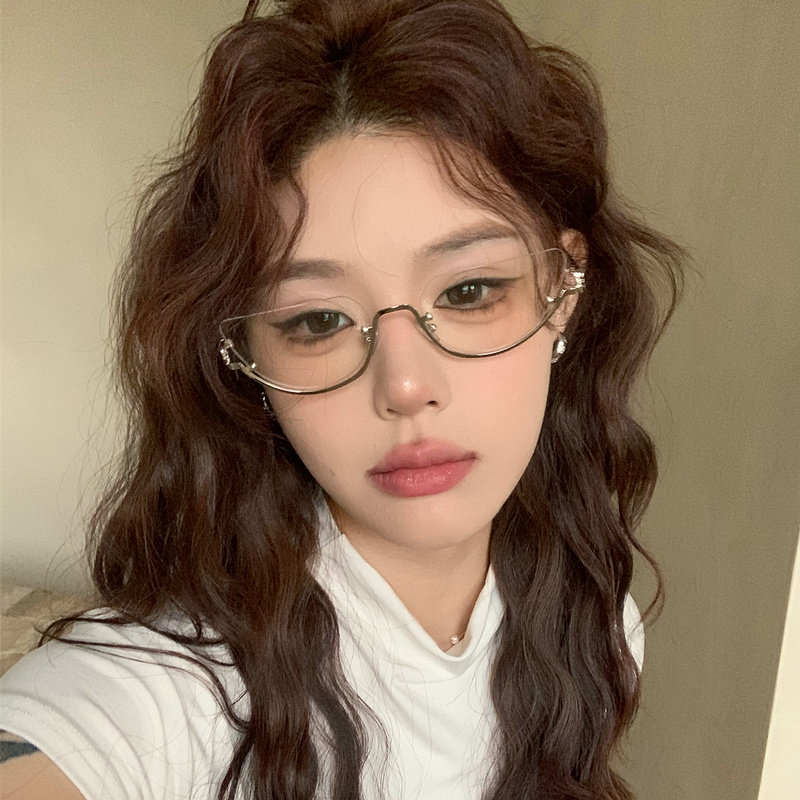 📚 复古半框金属银色猫眼平光镜女高级感造型素颜可配度数近视眼镜框