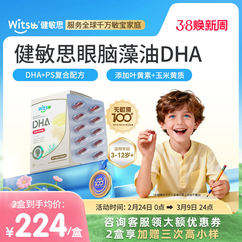 📚 witsbb健敏思眼脑学龄DHA藻油非鱼油3岁+PS叶黄素3岁以上青少年