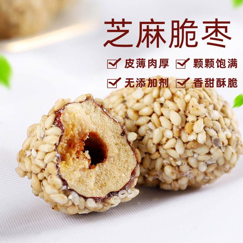 📚 蜜乐滋芝麻香酥脆枣无核酥脆新疆灰枣红枣250g*2袋空心嘎嘣脆零食
