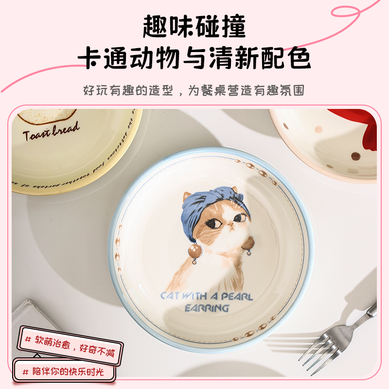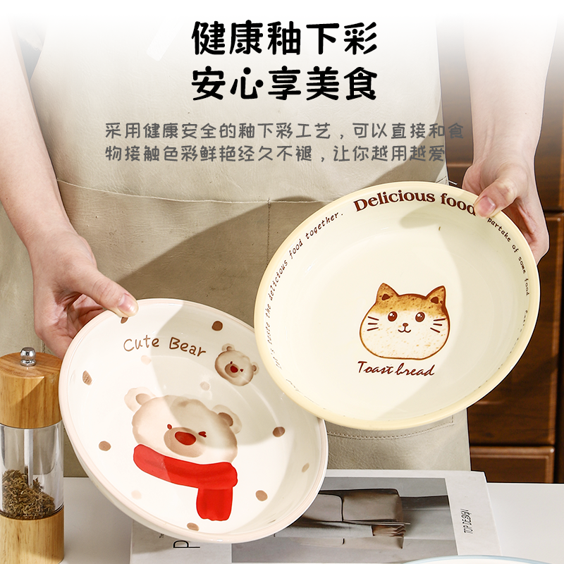 🍱首先说说我入手的这款“盘子菜盘家用特别好看的高级可爱釉下彩陶瓷餐具卡通餐盘圆盘深盘”,它的设计真的是让人眼前一亮!✨简直太有创意了!