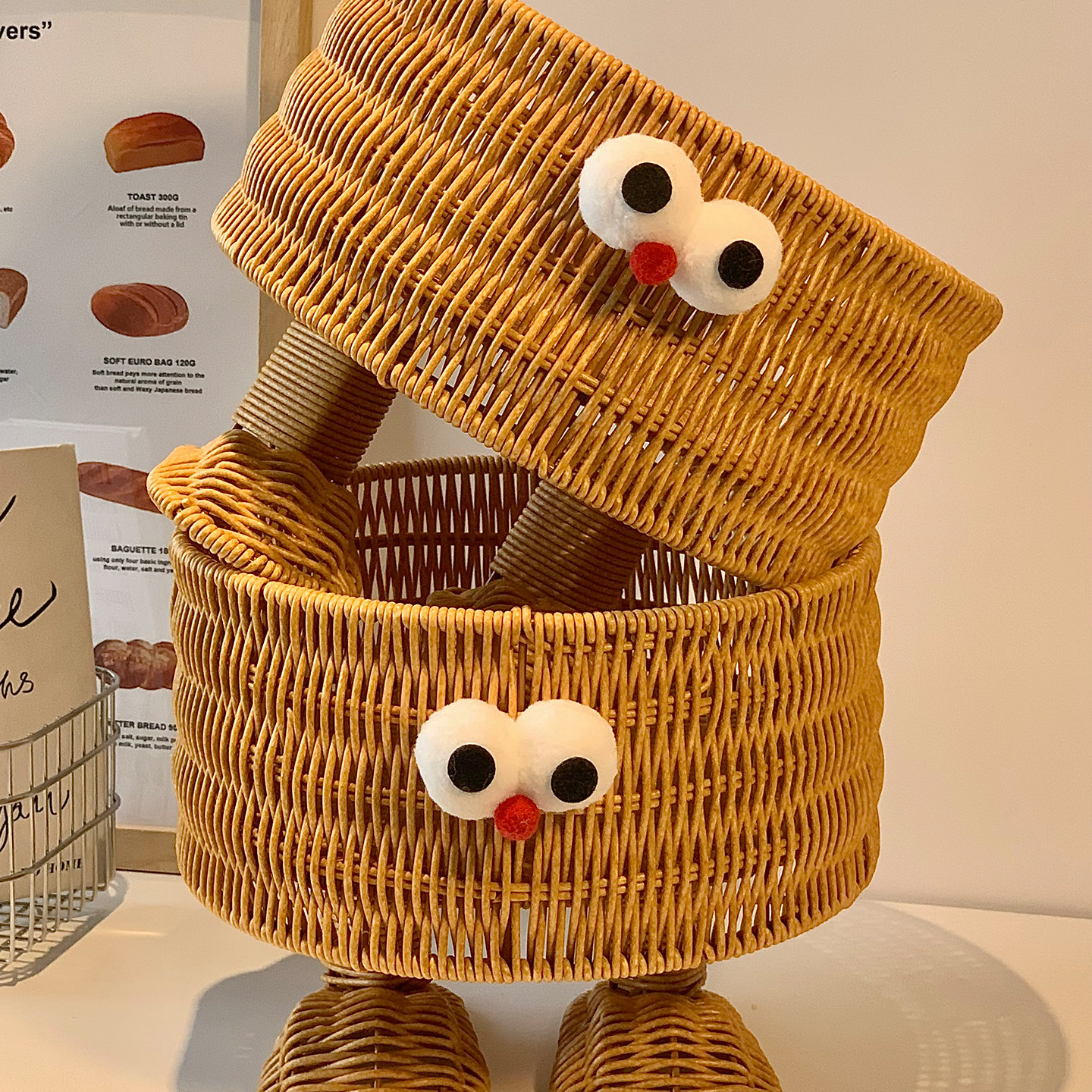 📚 可爱藤编收纳筐桌面收纳盒家用零食玩具杂物整理盒置物架编织篮子