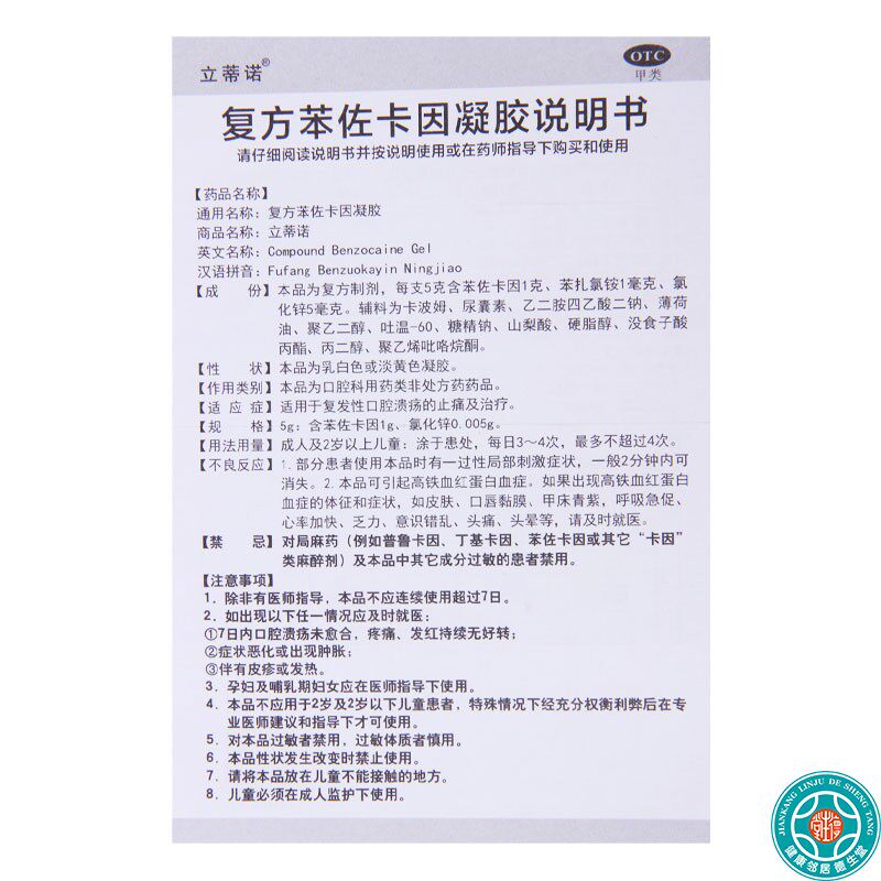 📚 立蒂诺复方苯佐卡因凝胶5g复发性口腔溃疡的止痛及治疗