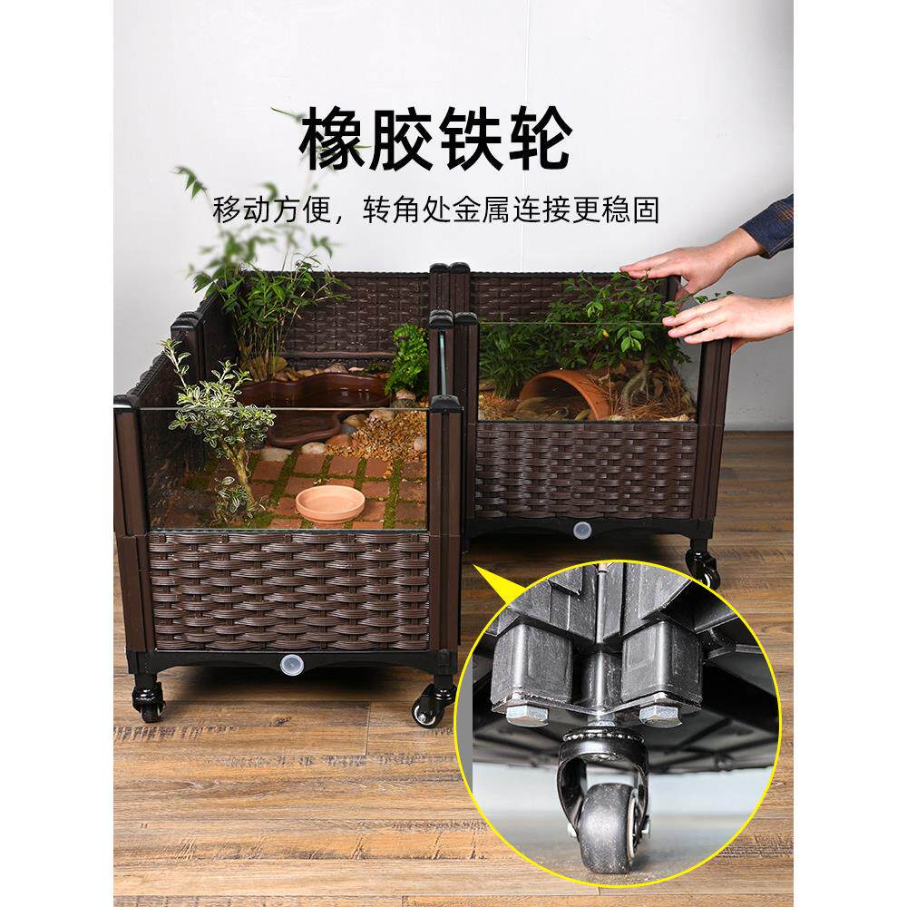 📚 黄缘龟专用饲养箱半水龟生态造景绿植物缸套餐带轮子可移动超大缸