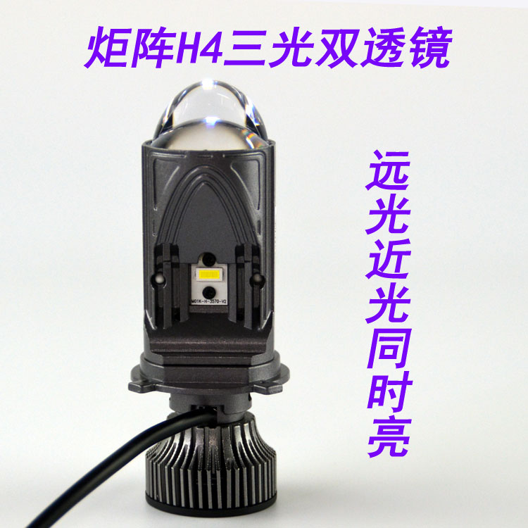 📚 汽车LED大灯H4三光双透镜矩阵聚光远近一体灯汽车摩托车货车通用