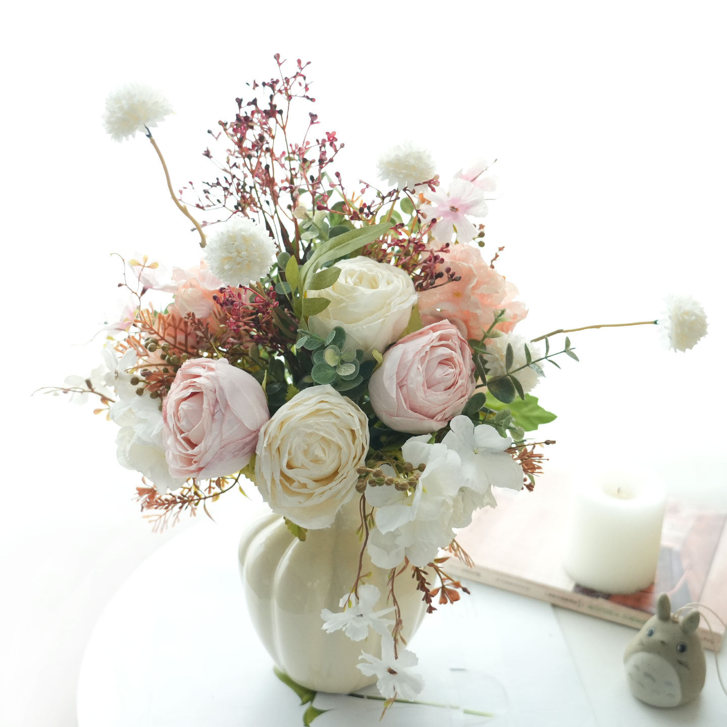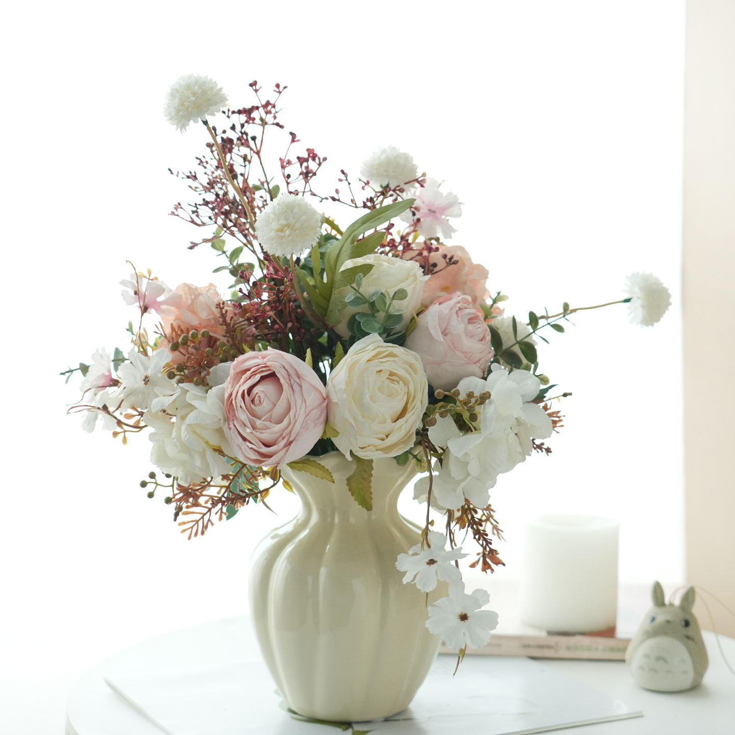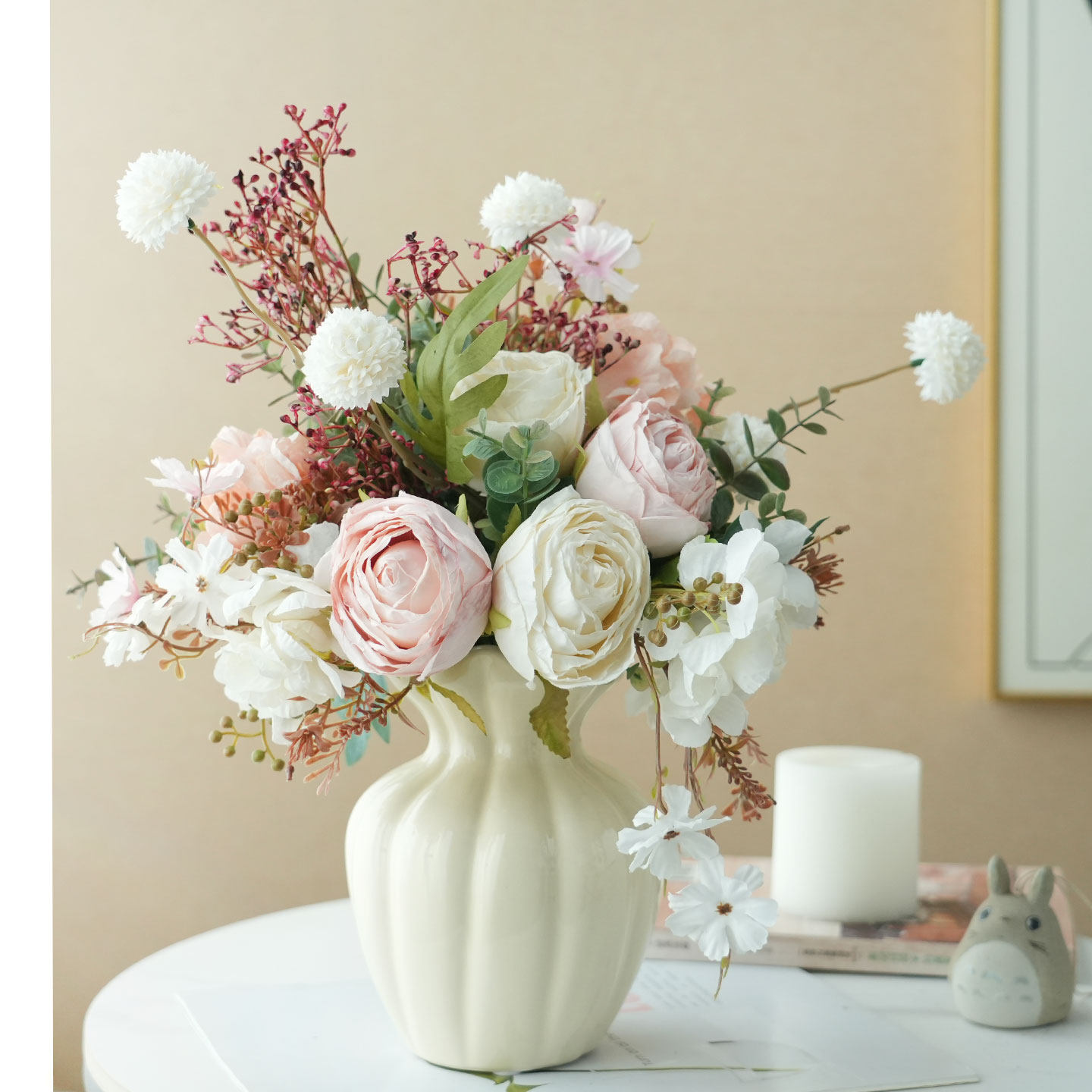 📚 初若安然北欧奶油风仿真花雅致假花高级感客厅餐桌电视柜装饰摆件