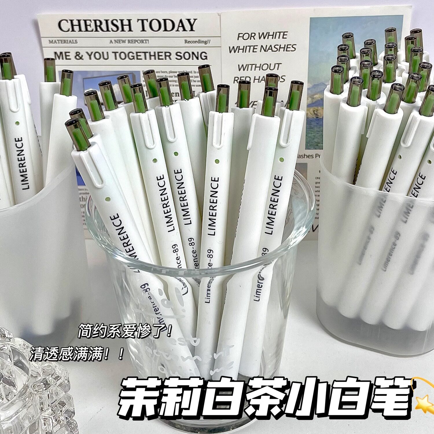 📚 茉莉白茶刷题笔中性笔小学生专用ins简约高颜值小白笔ST头速干顺滑初中生用按动中性笔芯黑色写字笔批发
