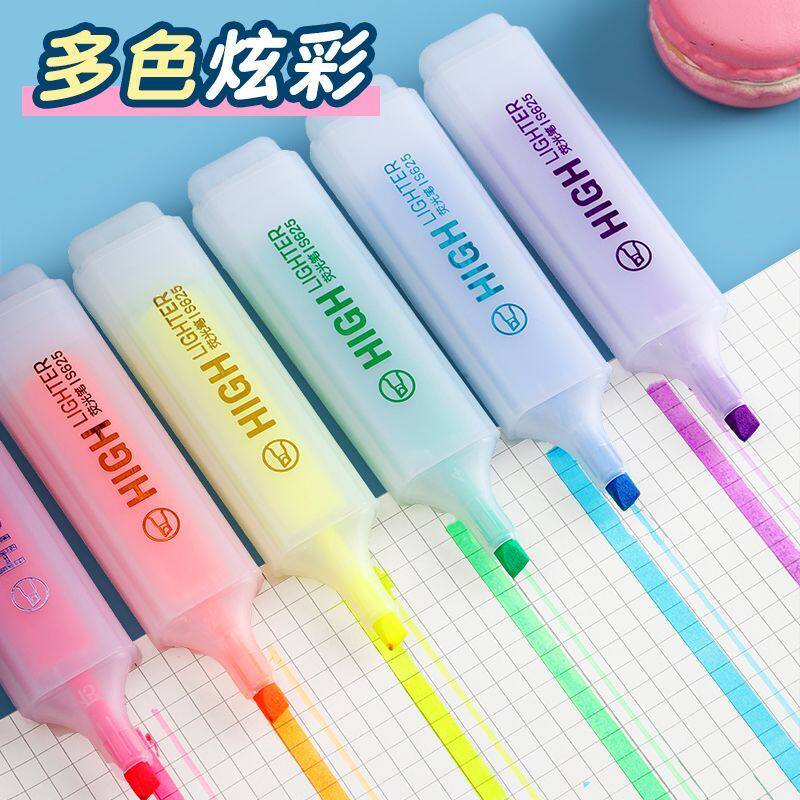 📚 宽头记号笔大容量荧光笔标记重点方杆易抓握学生做笔记专用彩色