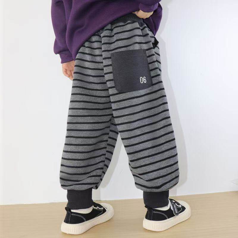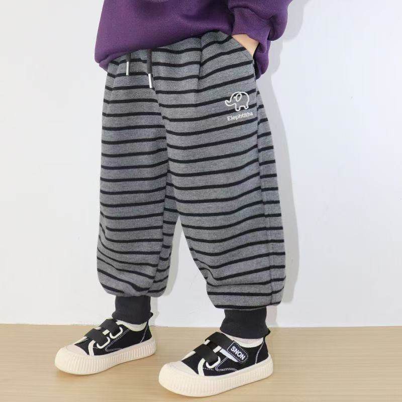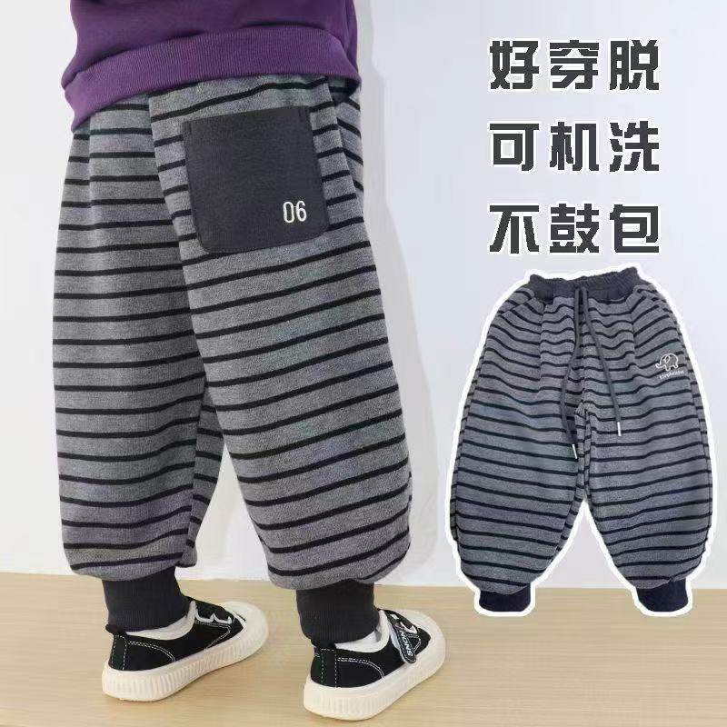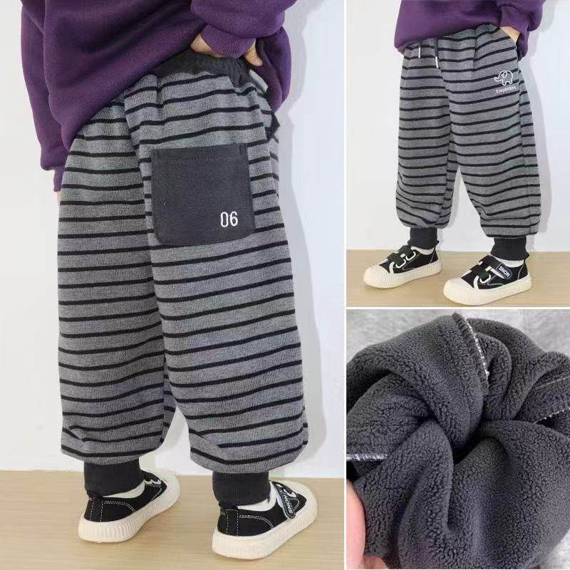 📚 儿童加绒运动裤条纹卫裤子秋冬款宝宝男童休闲长裤女童小童宽松潮