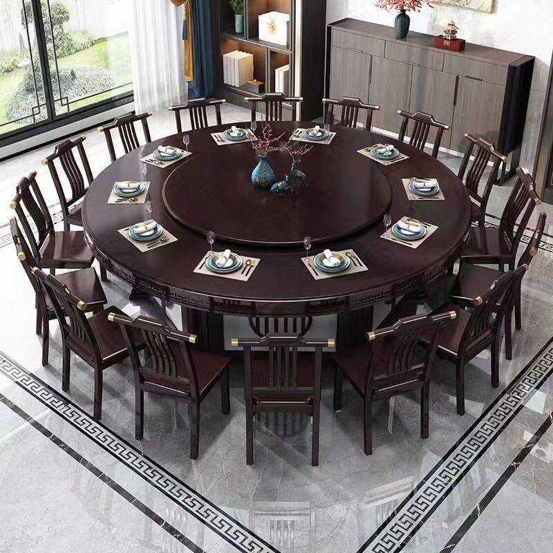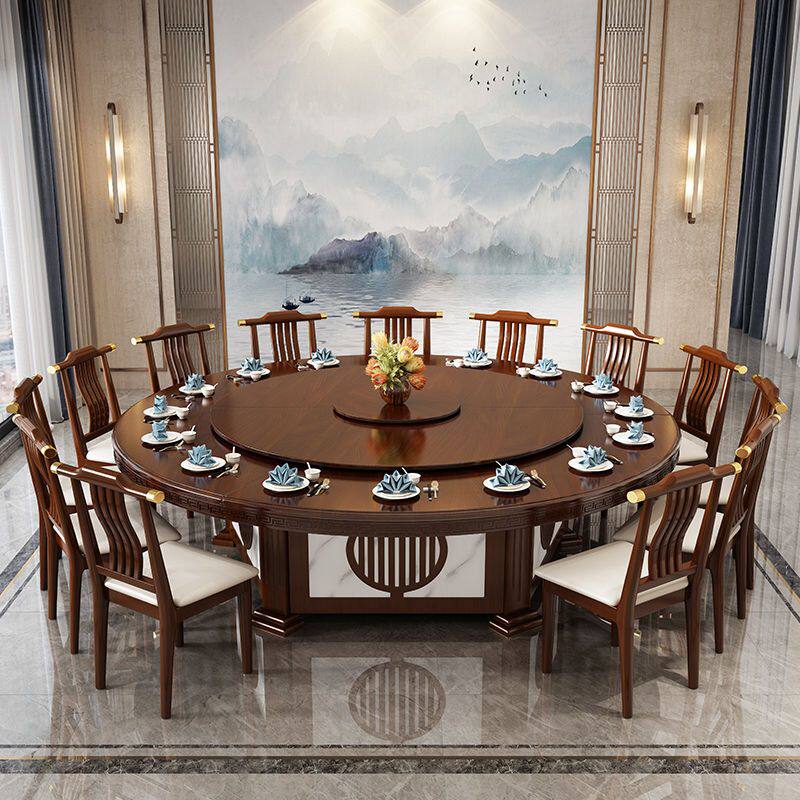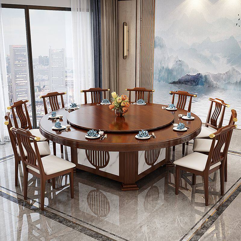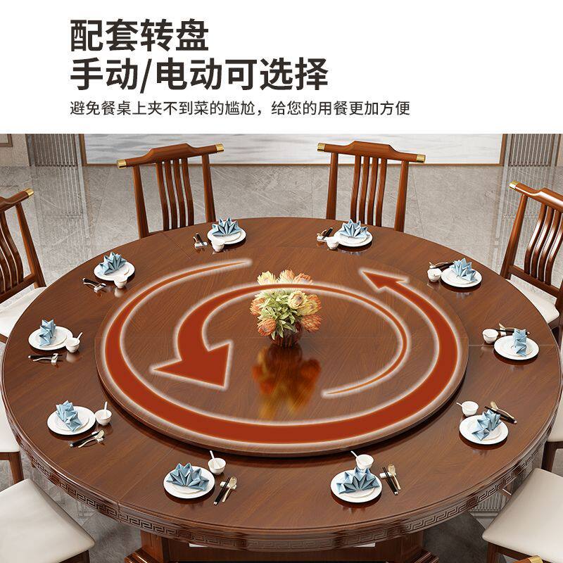 📚 酒店电动餐桌实木圆桌转盘新中式15餐厅20旋转饭店包厢火锅桌椅