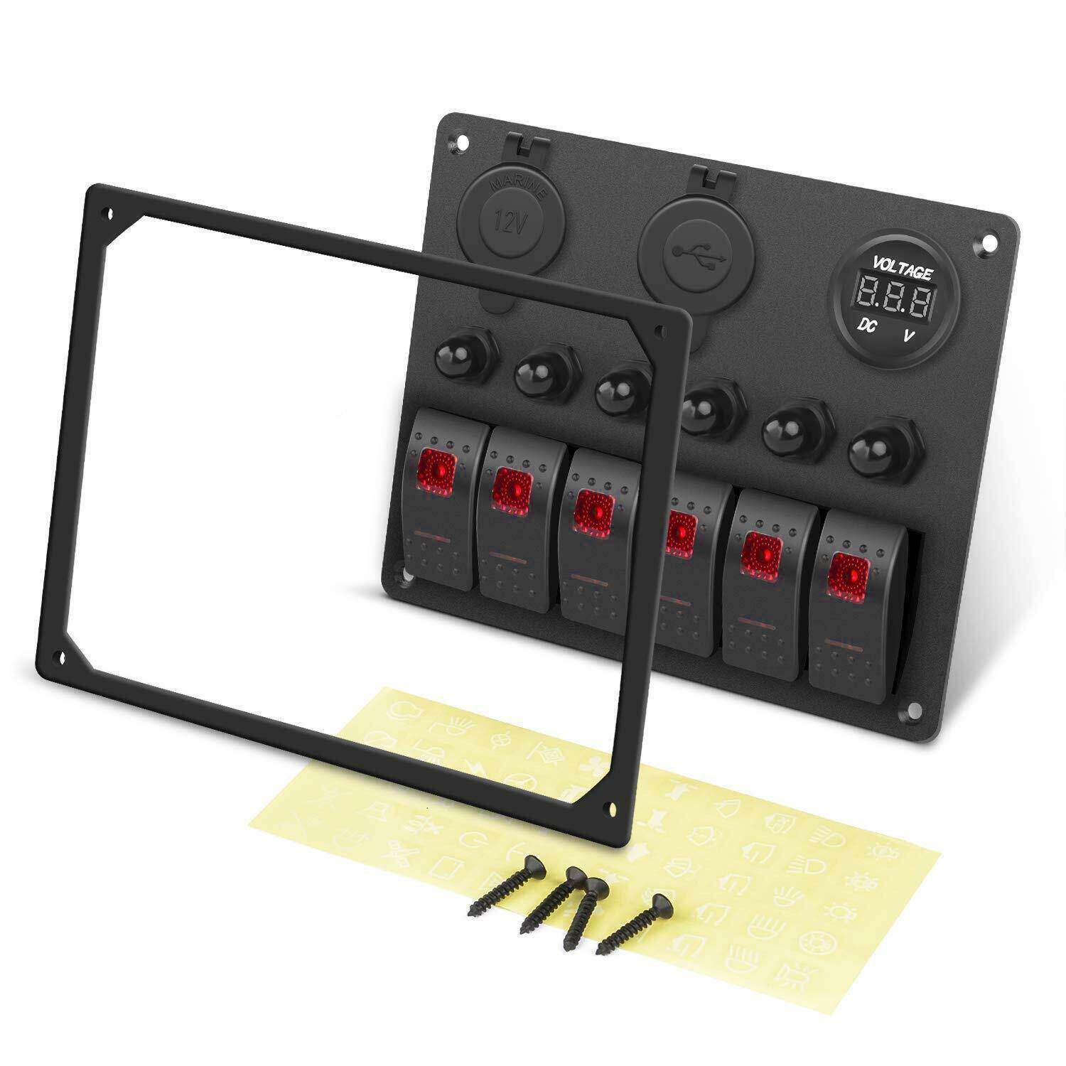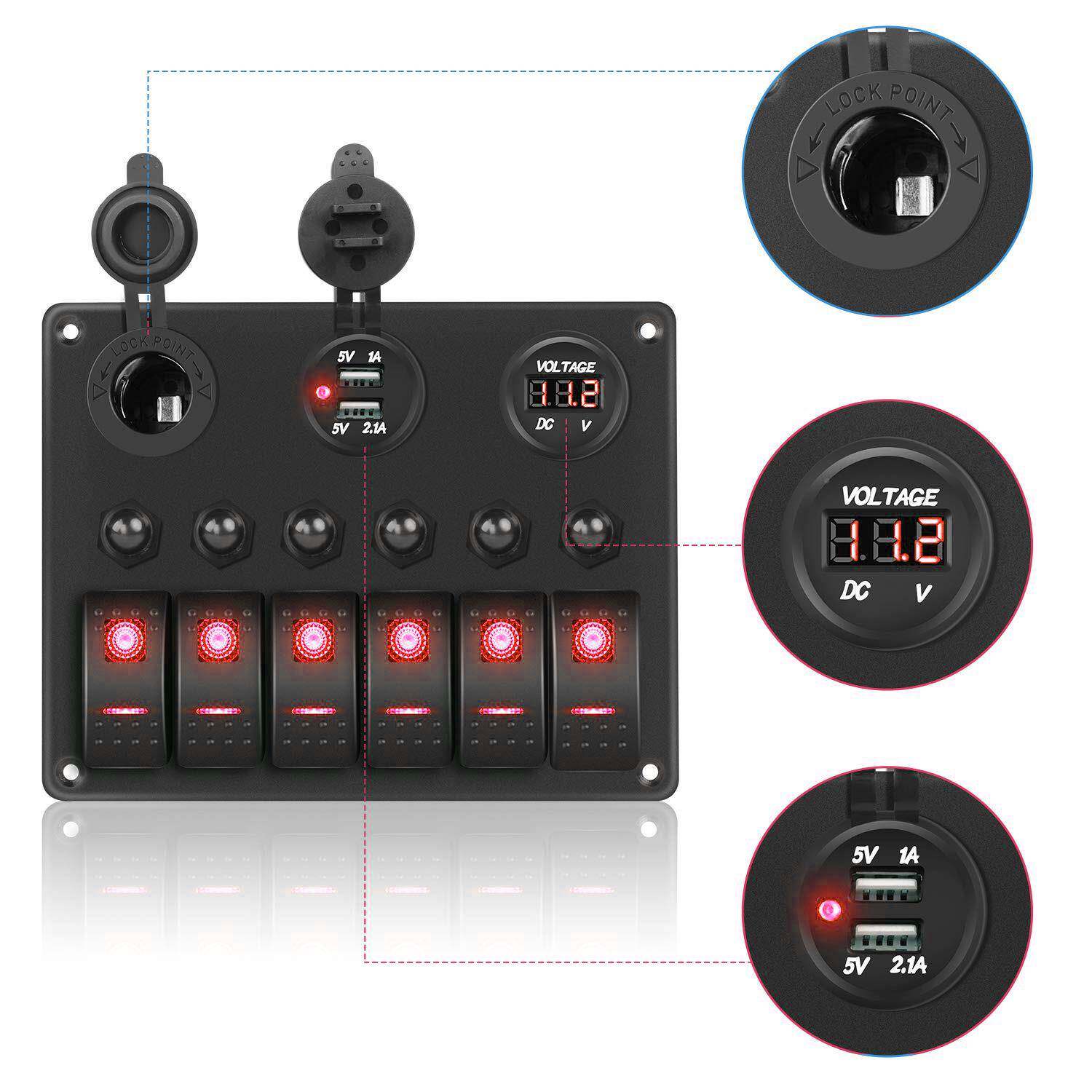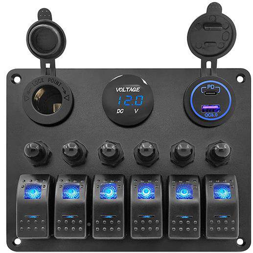 📚 开关的面板海船洋汽车房车防水直流蓝色开关板面6位GSGL663-过载