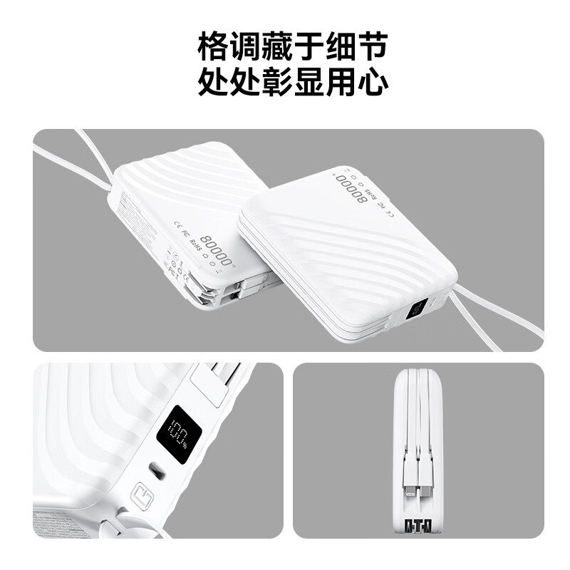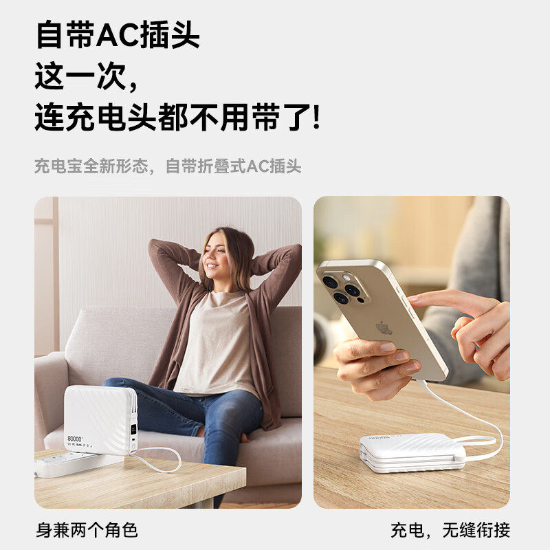📚 【3C认证】IMF支持超级快充充电宝自带线AC插头大容量20000毫安多功能便携式移动电源可上飞机适用所有手机