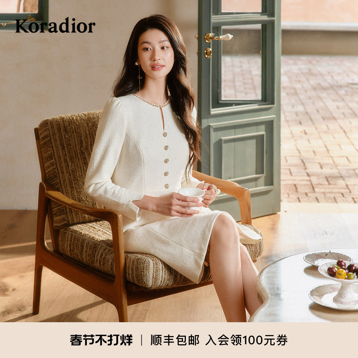 📚 珂莱蒂尔2025春季羊毛香风通勤气质淑女a字裙连衣裙