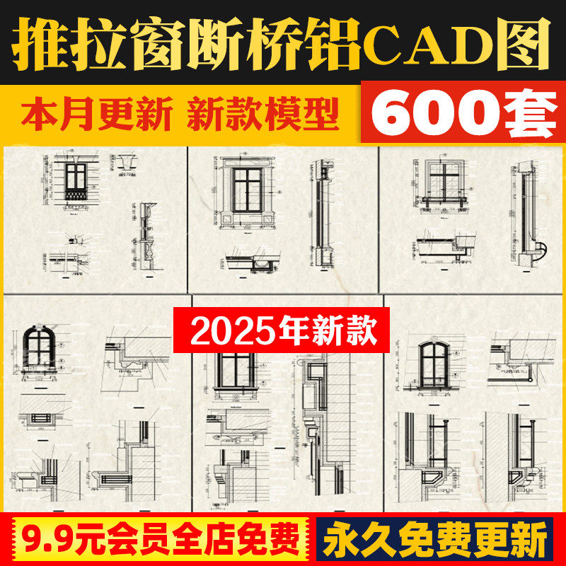 📚 推位门窗户立面推拉窗平开窗落地窗铝合金窗框断桥铝CAD图库模块
