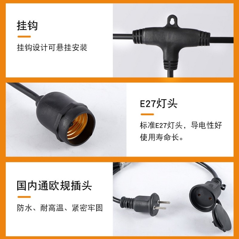 📚 E27灯头串灯防水灯笼户外灯笼串联线灯线多个灯头一体防水灯线头