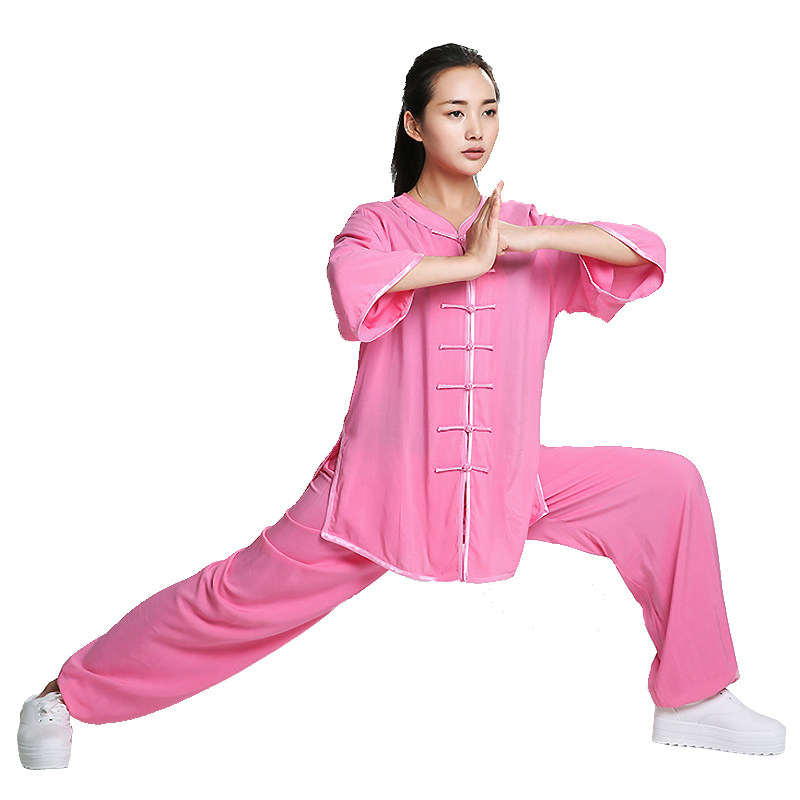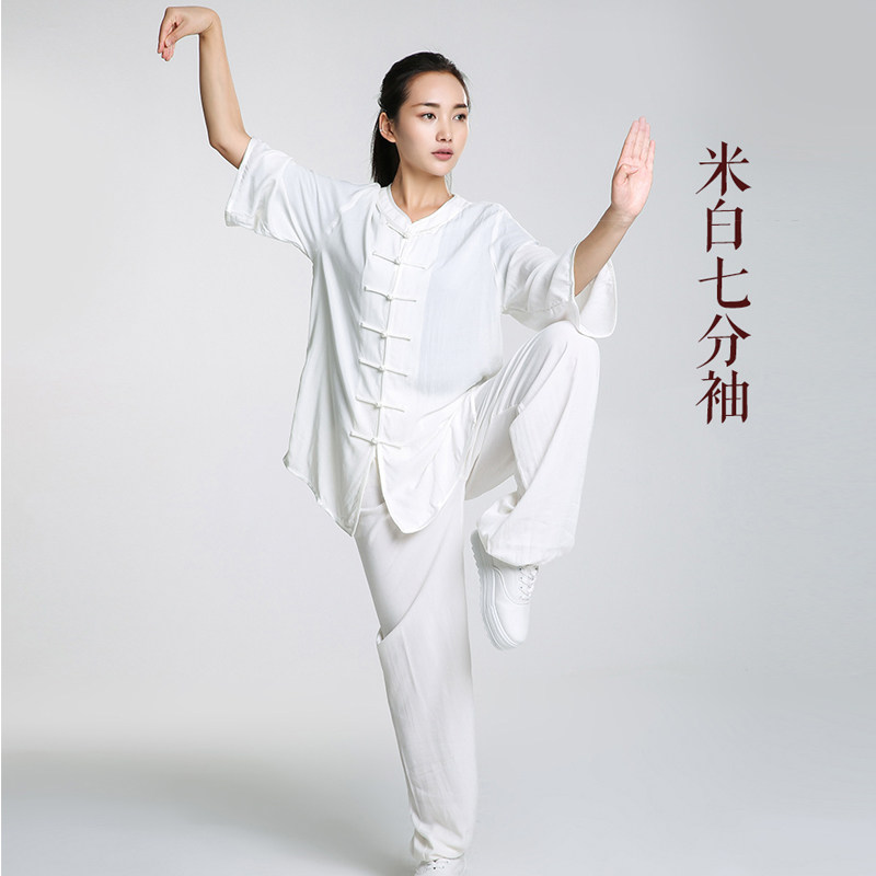 📚 夏优质人造棉绵绸太极服纯棉武术练功服男女太极拳棉绸八段锦服装