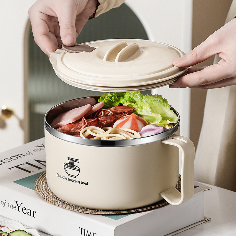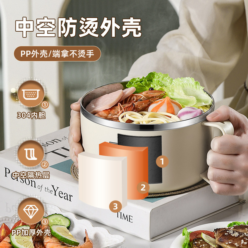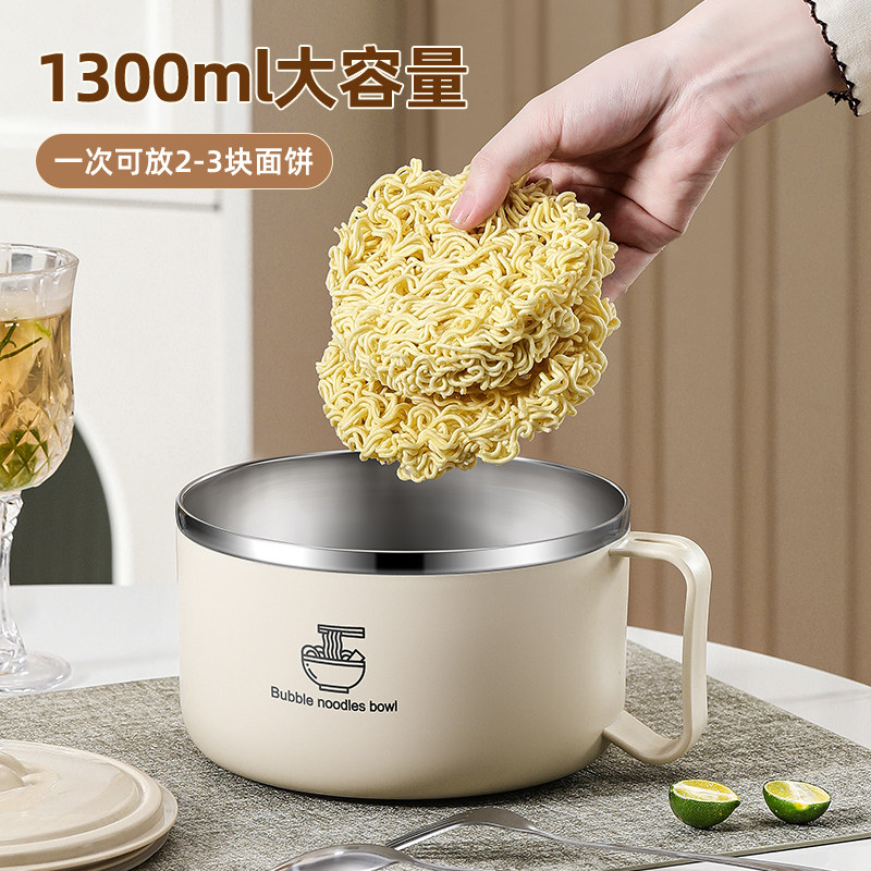 📚 304不锈钢泡面碗大容量带盖可沥水学生方便面汤盆碗打饭神器保温