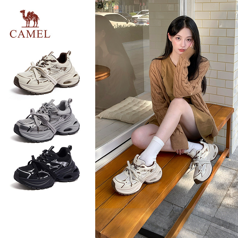📚 【银际】骆驼女鞋老爹鞋2026年春季新款厚底增高加绒鞋银色运动鞋