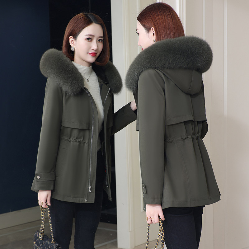 📚 海宁派克服女2025新款冬短款小个子懒兔毛内胆可脱卸品牌皮草外套