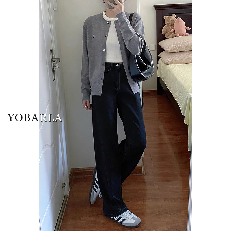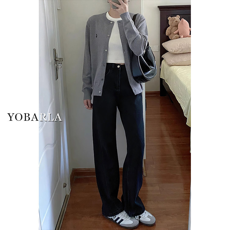 📚 黑色直筒牛仔裤女冬季加绒大码胖mm宽松显瘦窄版梨形身材阔腿裤子