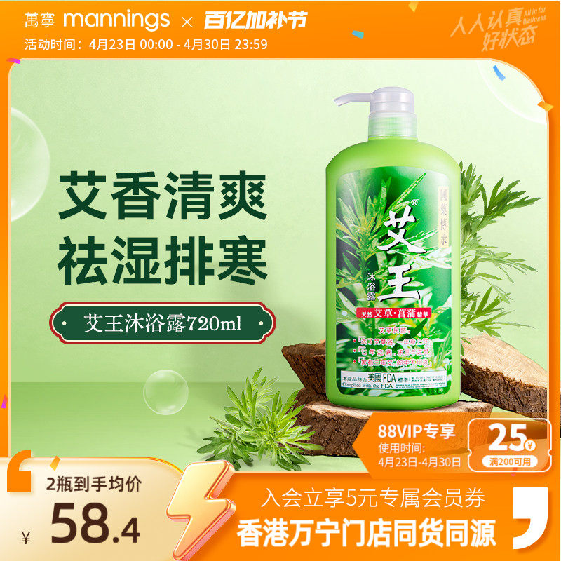 📚 【百补】万宁艾王艾草沐浴露持久留香春夏温和滋润保湿沐浴乳儿童