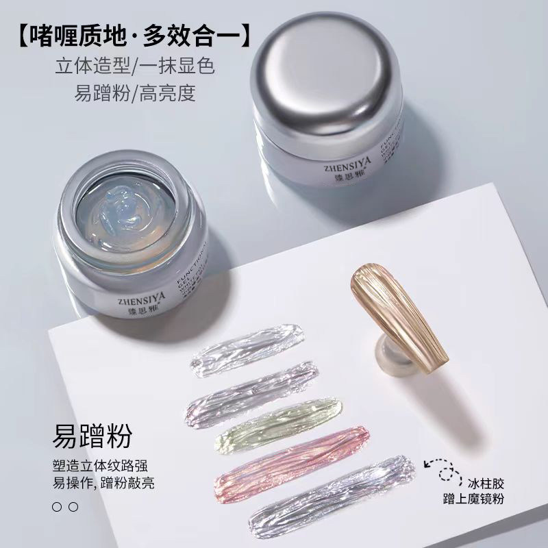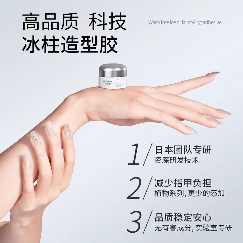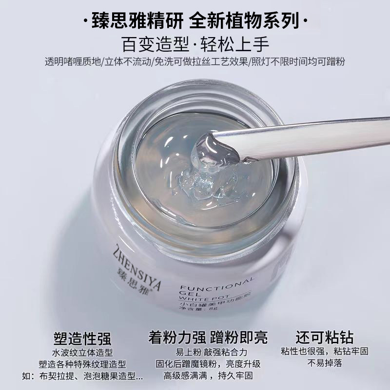 📚 臻思雅免洗冰柱胶美甲罐装功能胶甲油胶粘钻立体微雕蹭粉造型胶