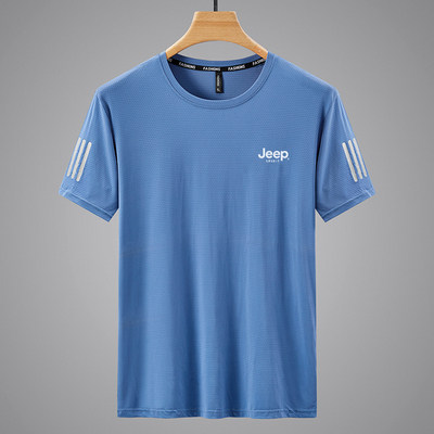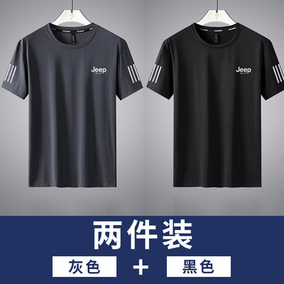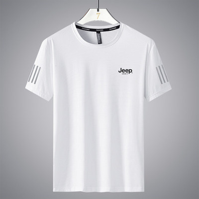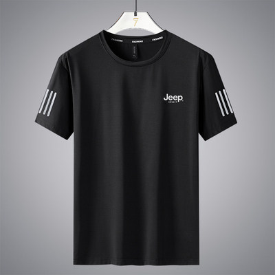 📚 吉普夏季短袖T恤男士圆领半袖运动休闲上衣大码宽松冰丝速干衣服