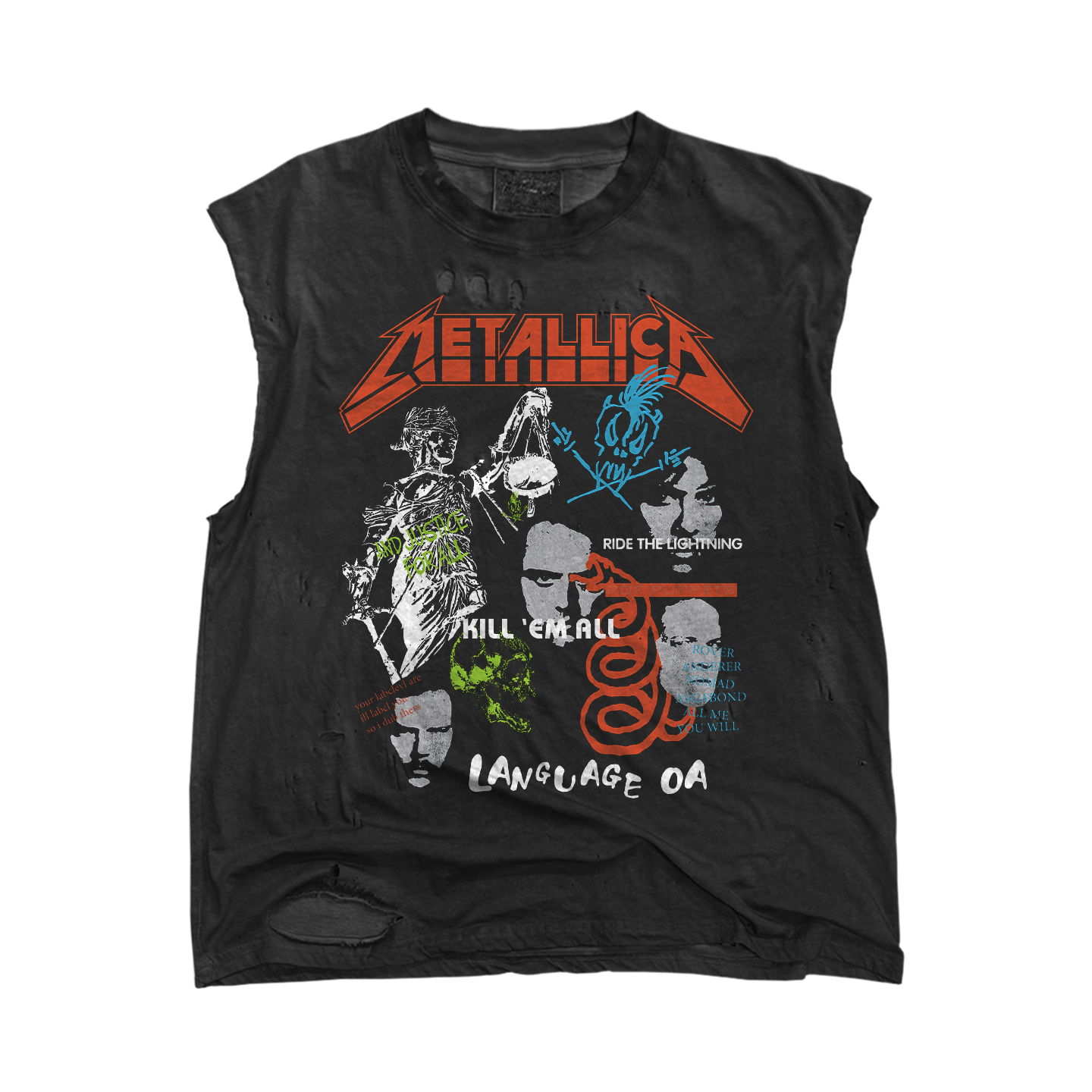 📚 金属乐队所有专辑拼接款!Metallica设计感水洗手工破洞砍袖背心